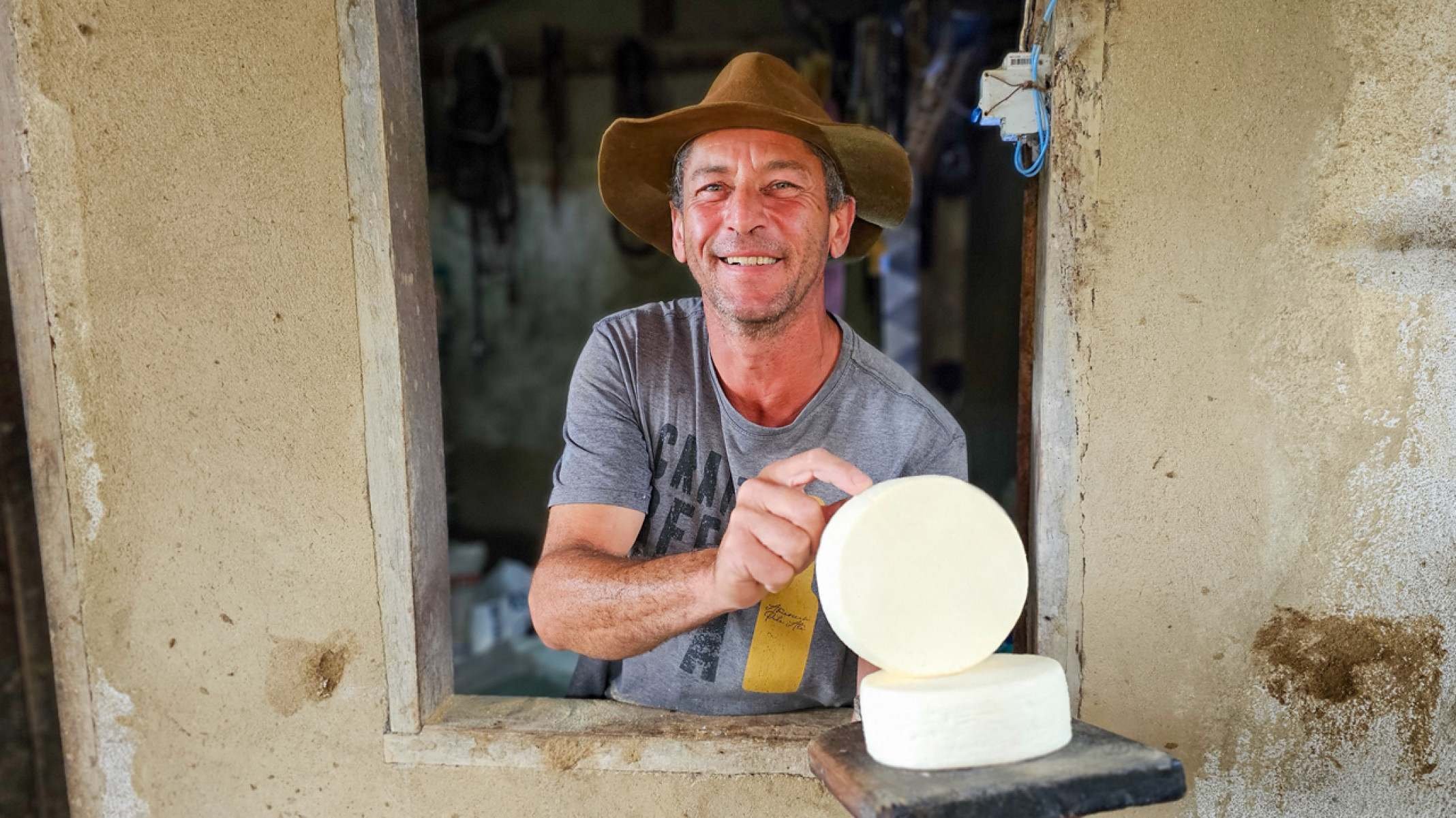 José Tadeu de Barros, de 49 anos, é um dos produtores de Congonhas do Norte que podem melhorar de vida com a inclusão do município na região do QMA do Serro. Filho e neto de produtores de queijo, ele produz o laticínio desde a infância, vivida em Conceição do Mato Dentro, que já faz parte da microrregião do Serro. O produtor vive em Congonhas do Norte há 30 anos. Em seu sítio de 15 hectares, atualmente, José Tadeu conta com 16 vacas produzindo leite, que gera de 12 a 13 queijos por dia.