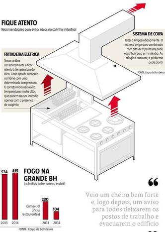 A reincid�ncia de fogo, entretanto, segundo especialistas e o Corpo de Bombeiros, indica que empres�rios do setor est�o ignorando a manuten��o frequente. Mais uma vez, o Auto de Vistoria do Corpo de Bombeiros (AVCB), documento que atesta a seguran�a de uma edifica��o contra inc�ndio e p�nico, n�o foi apresentado, de acordo com a corpora��o. Apesar dos n�meros de inc�ndios em estabelecimentos comerciais, que inclui restaurantes, ter diminu�do na Grande BH nos quatro primeiros meses do ano, de janeiro a abril de 2014, houve uma ocorr�ncia a cada 27 horas.