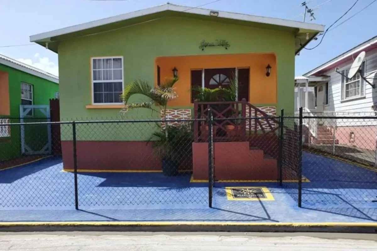 Com fachada em verde, laranja, vermelha e azul, a casa é cercada por um alambrado e tem o nome de Rihanna estampado na calçada, junto de um sol e de um tridente, símbolo da independência de Barbados do Reino Unido.