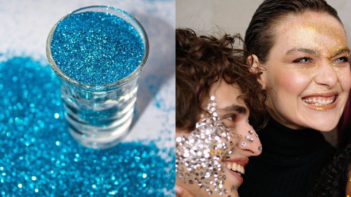 O glitter comum é um microplástico que polui rios e oceanos. Uma alternativa mais sustentável é o glitter biodegradável, feito de materiais que se biodegradam naturalmente no ambiente, como celulose vegetal, mas sua remoção segue as mesmas regras.