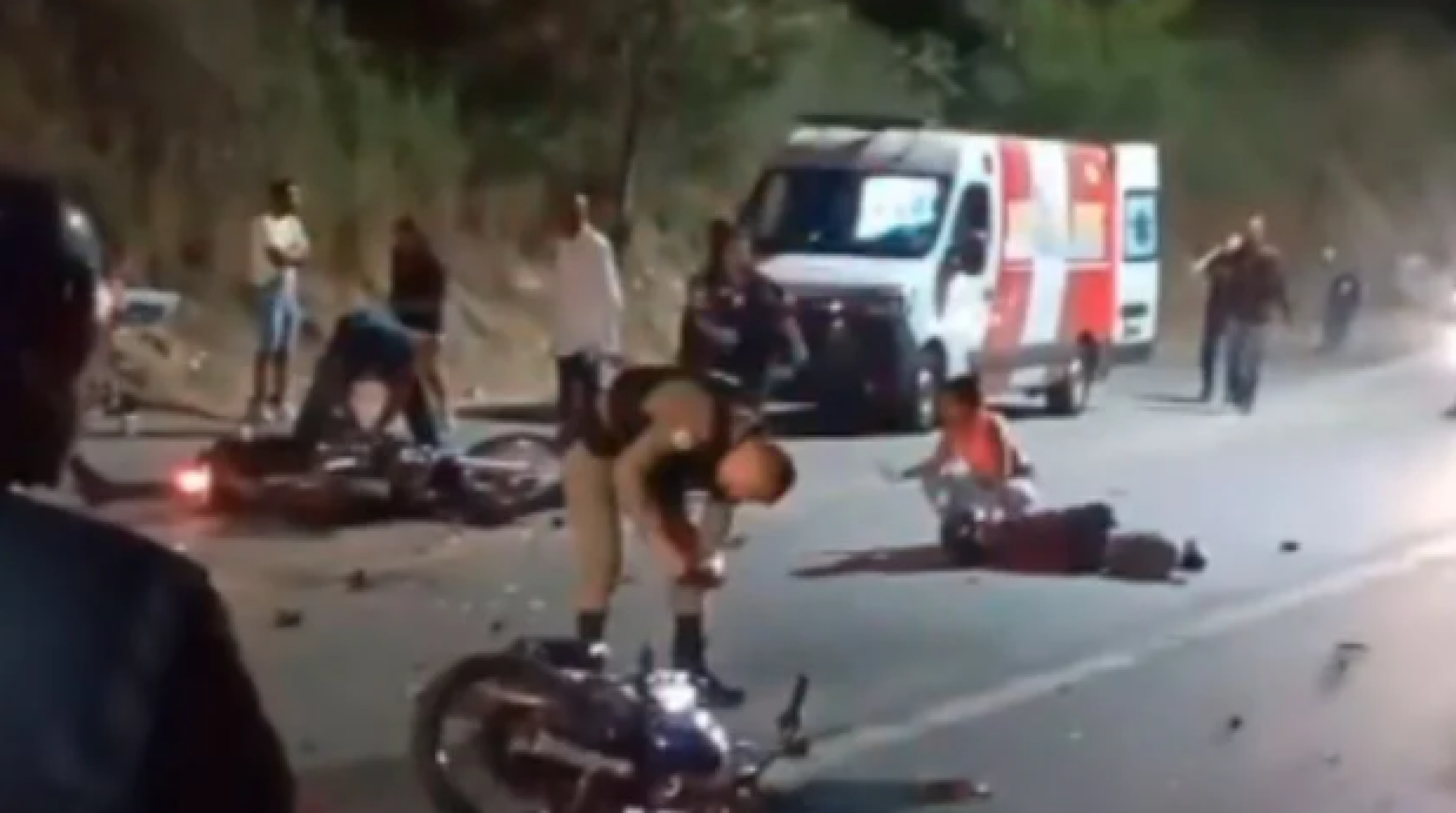 De acordo com testemunhas, uma ambulância que passava pelo local prestou os primeiros socorros aos motociclistas.