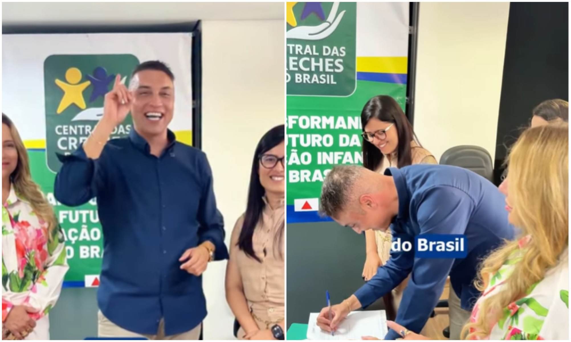 "Assinamos o convênio com a Central das Creches do Brasil e vem aí mais uma nova creche pra nossa cidade!", escreveu ele.
