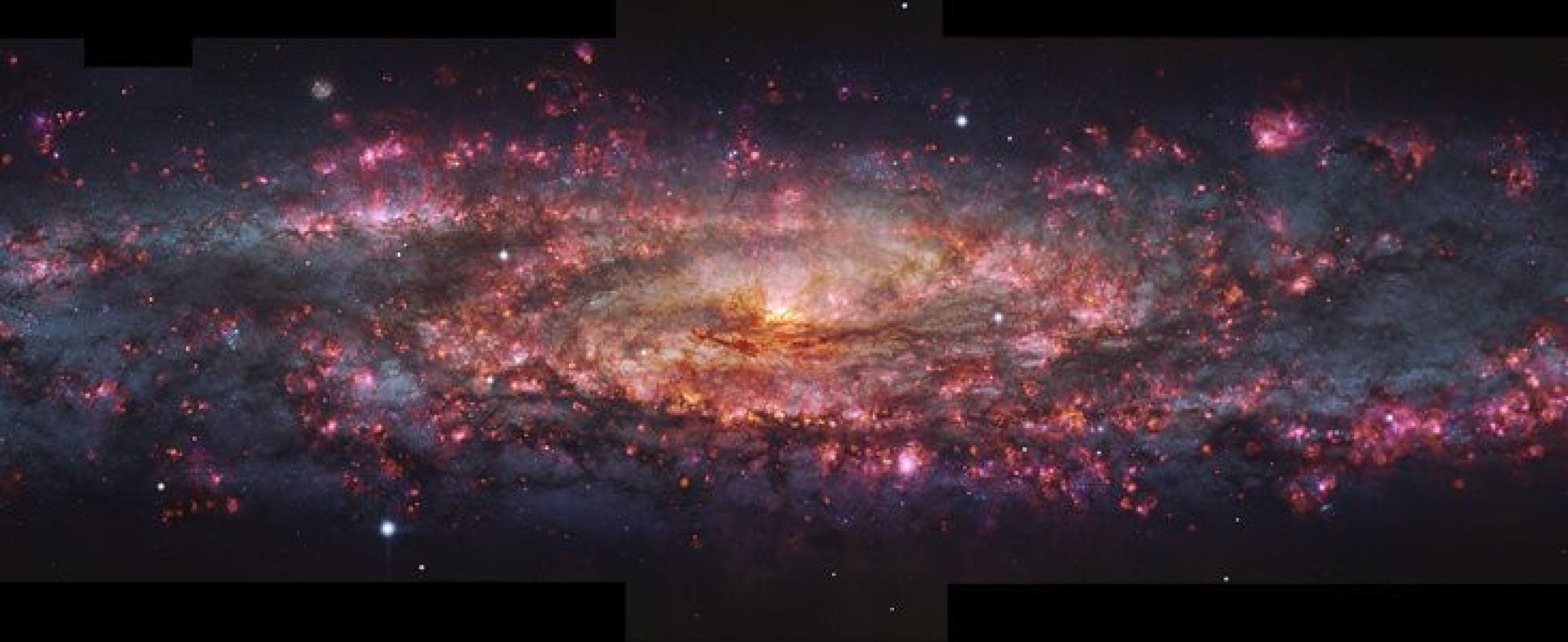 Uma espiral com infinitos tons de rosa, amarelo e laranja é a imagem que astrônomos do Observatório Europeu do Sul (ESO) divulgaram nesta quarta-feira (18) de uma galáxia distante, a fim de estudar melhor seu funcionamento.