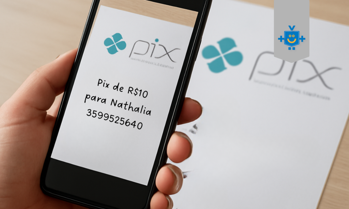 Pode ser uma foto, um print ou até uma imagem com a chave Pix e o valor escritos à mão. Vale placa, papel, conta rabiscada ou comprovante informal. A imagem é o “gatilho” do pagamento.