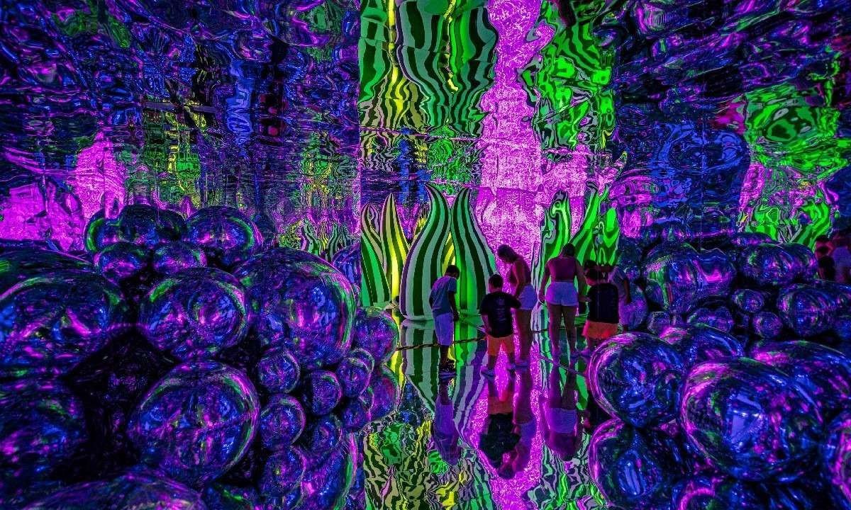 O trajeto conecta os visitantes à criatividade e interatividade dos espaços “Jornadas das cores”, “Jardim encantado” e “Passeio cósmico”, e convida a uma viagem por um labirinto de espelhos, com luzes e tentáculos, em um universo fantasioso composto de cogumelos, flores, coelhos gigantes e criaturas divertidas.