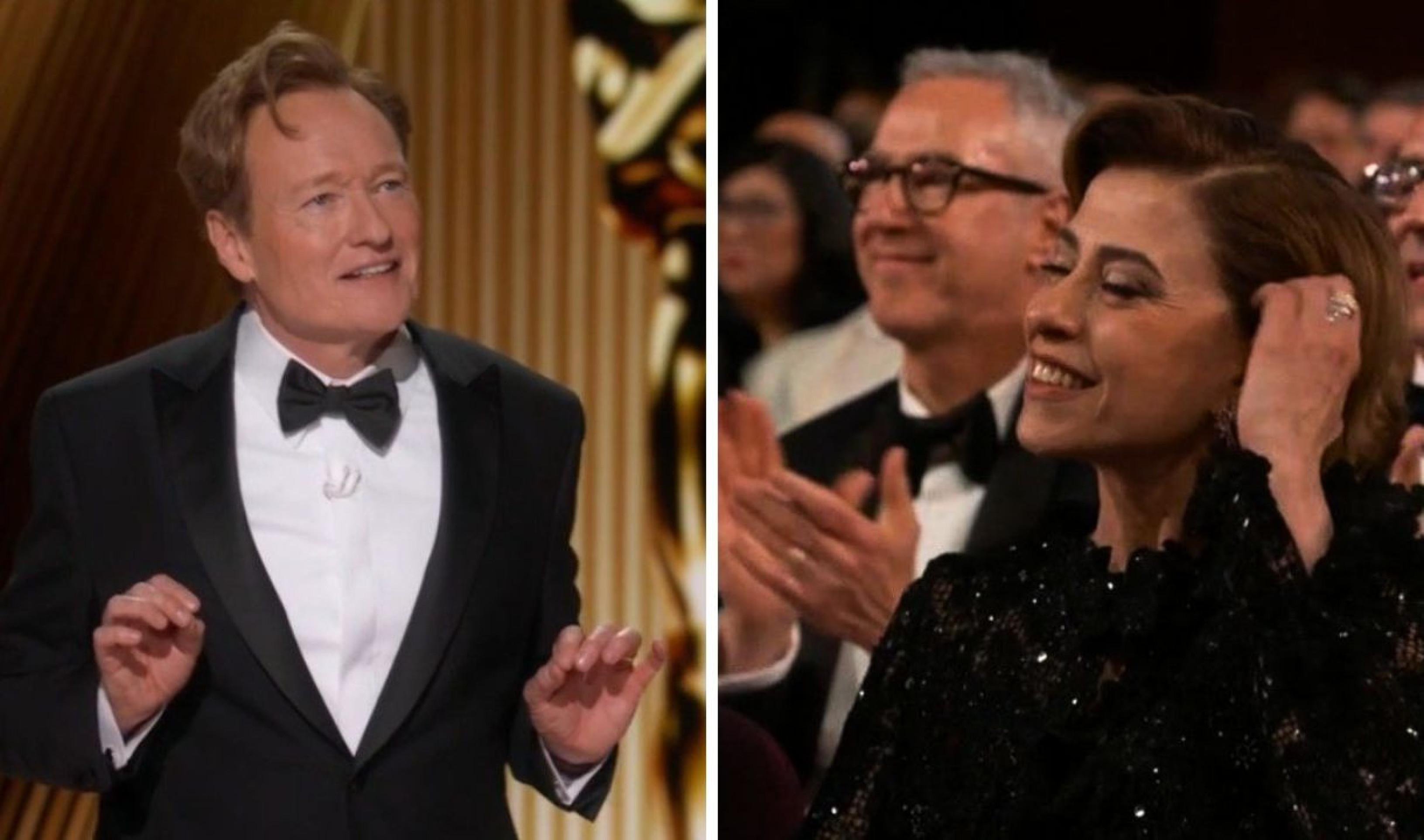 Após apresentar alguns representantes ao Oscar de Melhor Filme, ele citou o representante brasileiro na premiação. “Tem também ‘Ainda estou aqui’, que é a história de uma mulher que fica sozinha após o marido desaparecer. Minha esposa viu e disse que adorou a história e queria que acontecesse com ela”, disse o humorista.