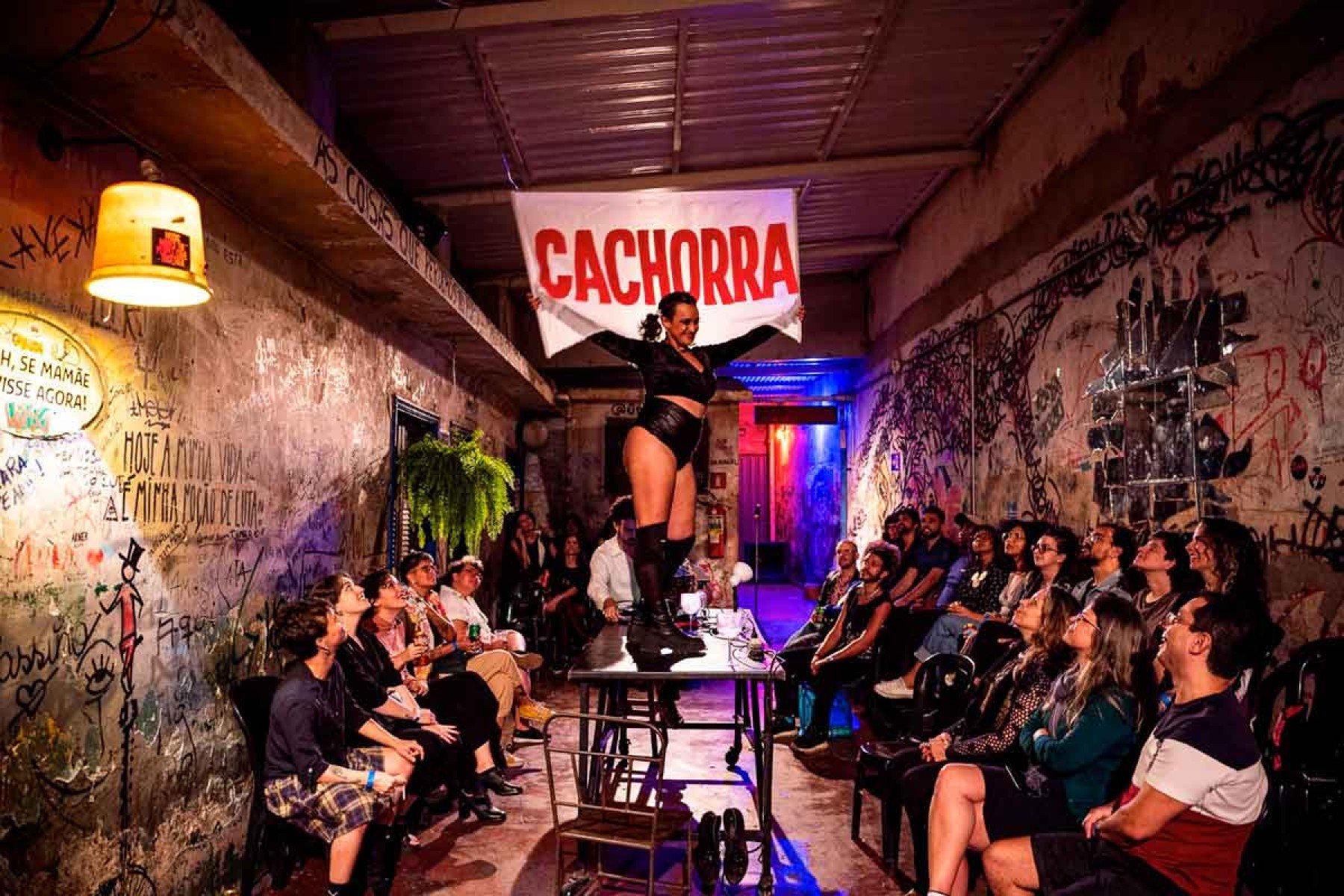 Já “Cachorra” resulta da reunião de textos escritos em colaboração com Idylla, adaptados para a trilogia. “Minha função como dramaturgo era organizar as experiências pessoais de cada ator dentro de um roteiro possível”, pontua Maurity. Ele observa que o espetáculo foi criado sob o impacto da pandemia, mas ganha novos contornos no atual contexto social.