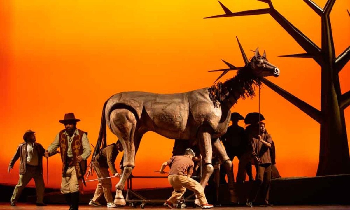 A ópera revisita o libreto escrito por Rufo Herrera há mais de três décadas. Na concepção cênica, Rita Clemente adotou uma estética surrealista, evocando referências das obras de Guimarães Rosa. Assim, o pacato cenário do sertão mineiro ganha vida no palco por meio da presença de centenas de intérpretes, objetos cênicos inusitados e cavalos gigantes.