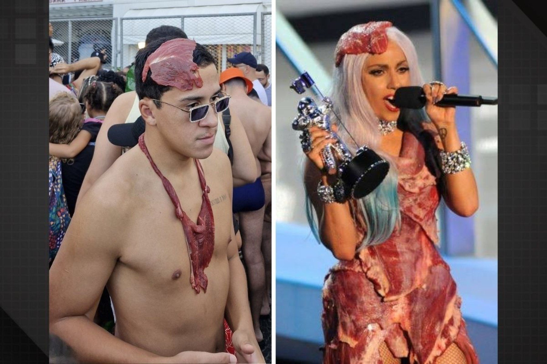 Um fã da cantora Lady Gaga viralizou nas redes sociais ao ser flagrado “vestindo” pedaços de carne crua em frente ao Copacabana Palace. A artista está hospedada no hotel para o show deste sábado (3), previsto para começar às 21h15.