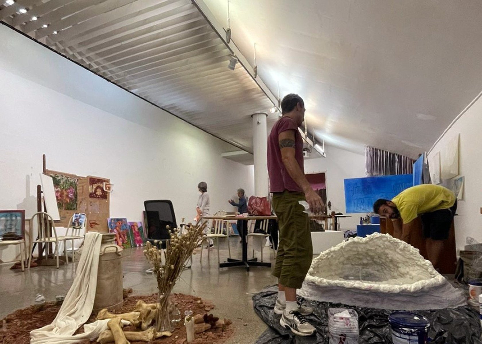 Ao longo de um mês, a galeria da escola foi transformada em ateliê compartilhado, recebendo experimentações, práticas coletivas e encontros. Até dia 20, o público terá acesso ao desdobramento desta imersão coletiva.