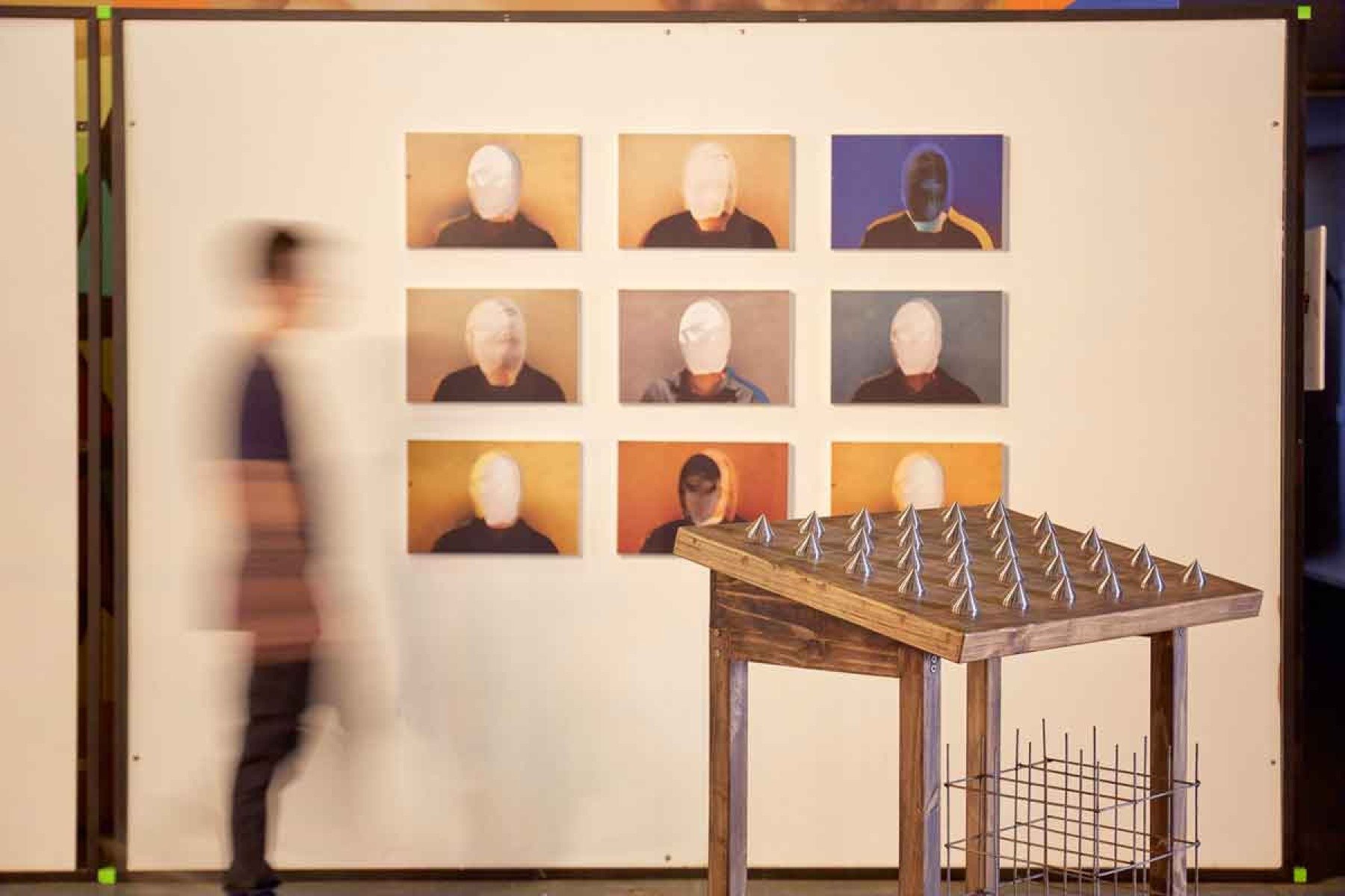 Há trabalhos em diferentes suportes: desenho, serigrafia, vídeo, instalação, pintura e fotografia.