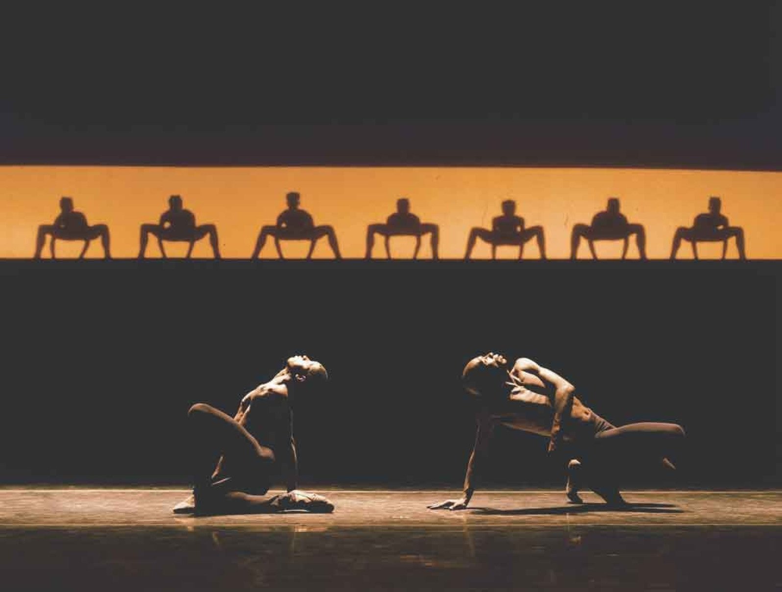 Atores do Grupo Galpão se misturam a pessoas do público no palco da peça '(Um) ensaio sobre a cegueira'