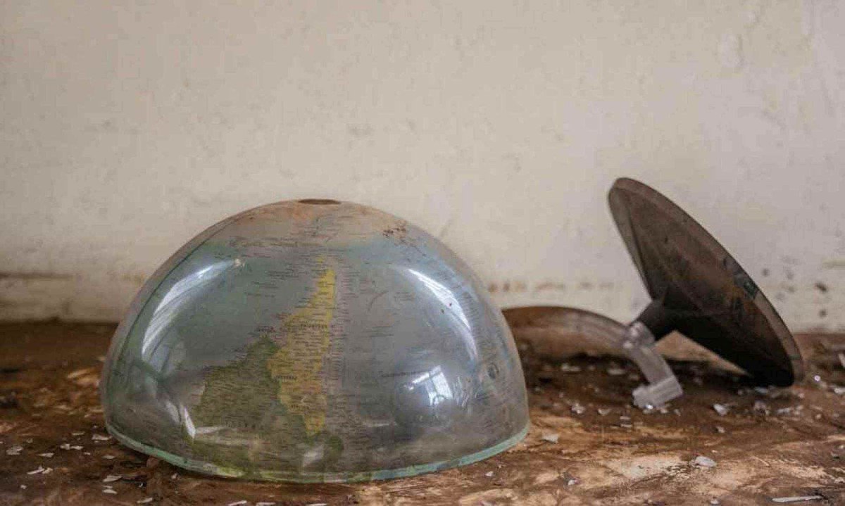 Isis também fotografou os escombros de uma sala de aula, onde um globo terrestre está partido ao meio, caído ao chão. O país que se sobressai é o Brasil, de cabeça para baixo, cumpre dizer.