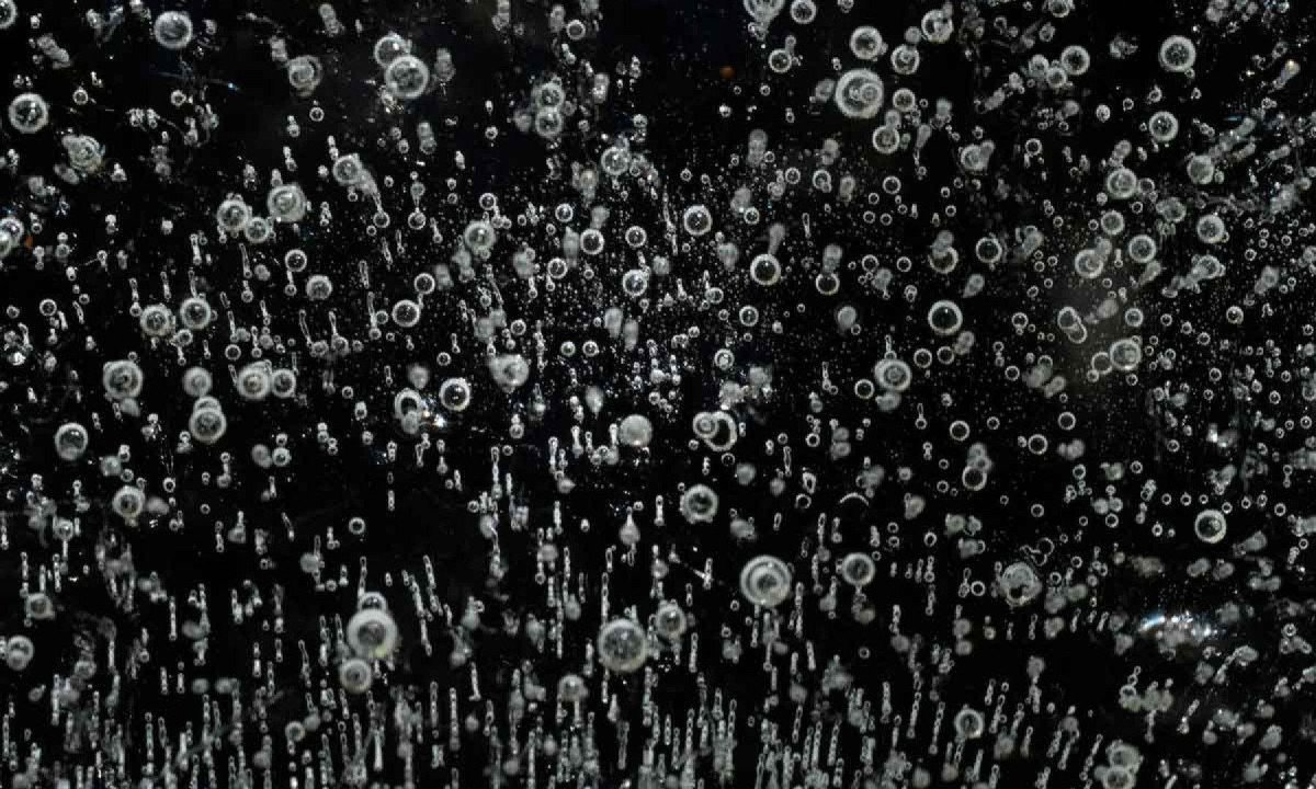 Cao ilustrou essa ideia com fotografias de uma barra de gelo derretendo. As gotas que caem – nem sempre em linha reta – evocam os átomos em movimento, que, eventualmente, saem de sua trajetória.