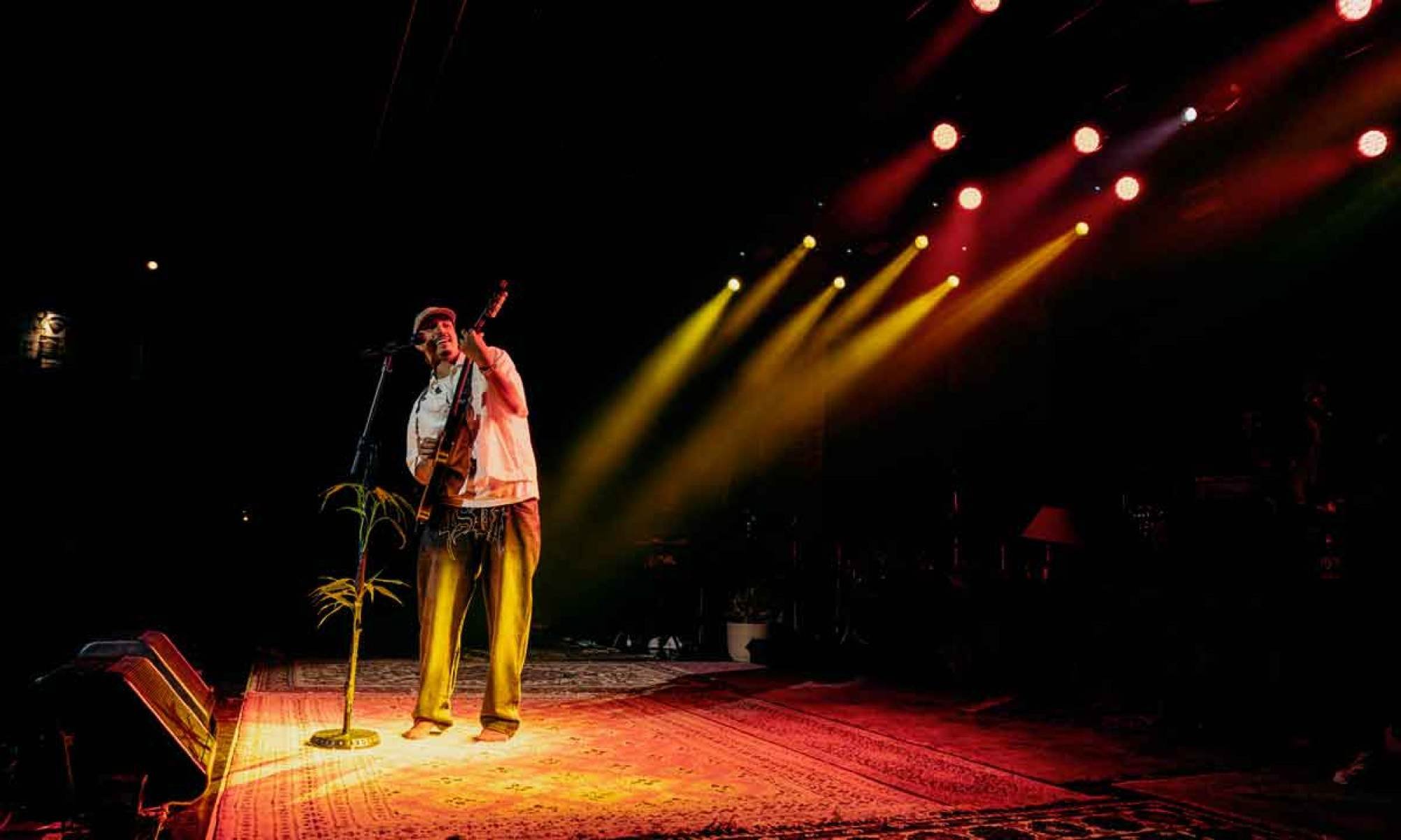 O palco, decorado com plantas, tapetes e luminárias, amplia o universo visual criado pelo álbum e tem cenografia assinada por Carol Agya. “Trouxemos essa estética de um bom lugar para tomar vinho”, resume Delacruz. As cores da bebida também aparecem no cenário e na iluminação. O repertório inclui as sete faixas do novo projeto, além dos sucessos do artista, incluindo “Sobre nós”, que o revelou em Poesia Acústica.