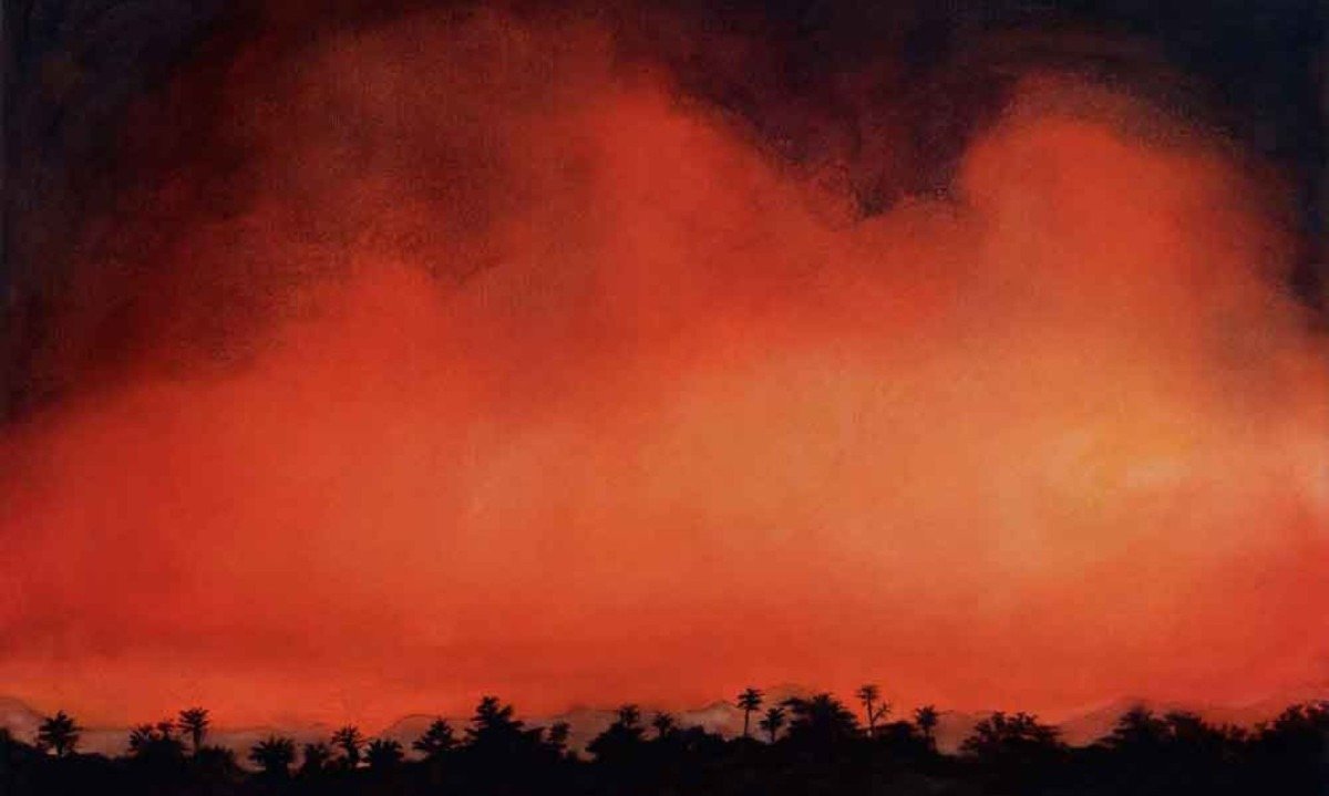 Emoções e memórias marcam o conjunto de obras inspiradas em imagens de queimadas e tragédias ambientais. O fogo surge tanto como força criadora como elemento de destruição.