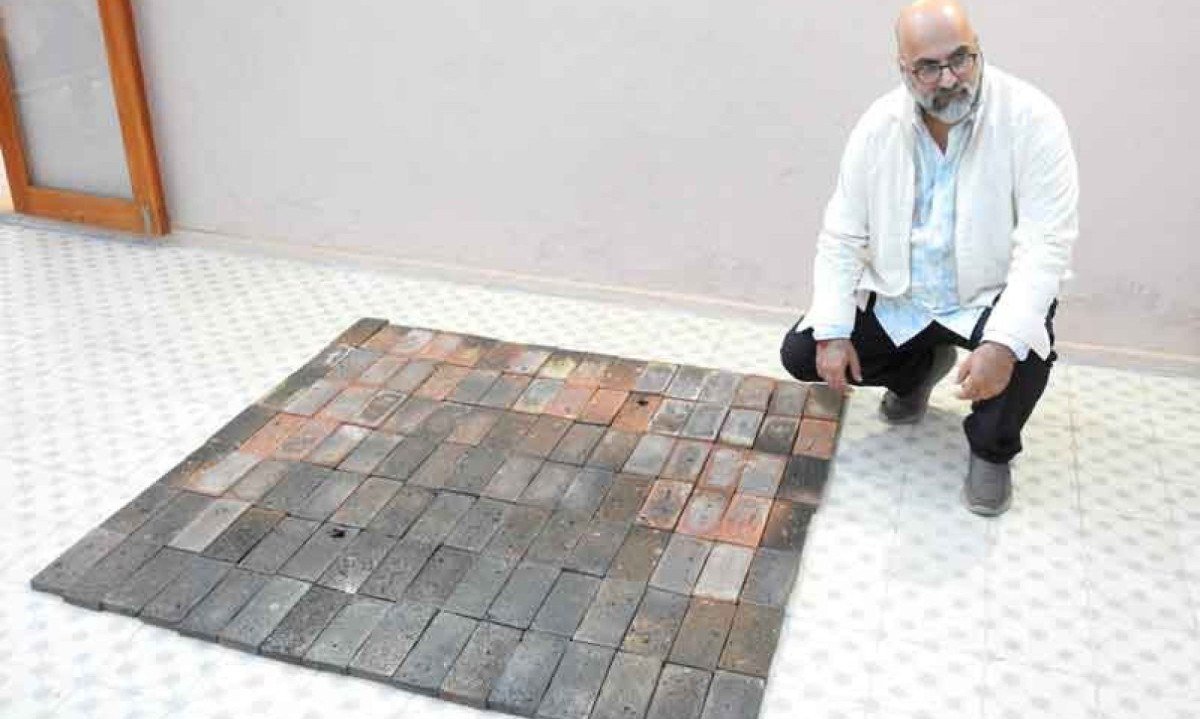Duas crianças brincam sobre um piso de tijolos. O piso de tijolos está na varanda da galeria. E “Deus na escuridão”, o livro que inspirou esse simples piso que sustenta duas vidas e suas memórias. Rogério Blach, “Chão”.