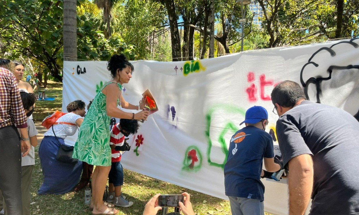 A atividade foi promovida pela artista Mona no Parque Municipal, com o apoio da grafiteira Loba