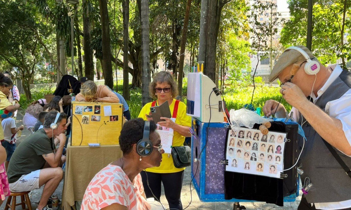 Siga noDurante a tarde deste domingo (24/8) da Virada Cultural 2025, a partir das 13h, teatros de lambe-lambe foram apresentados no Espaço Ficus, no Parque Municipal, na Região Centro-Sul de Belo Horizonte. O nome do do grupo é Coletivo EmCaixa.