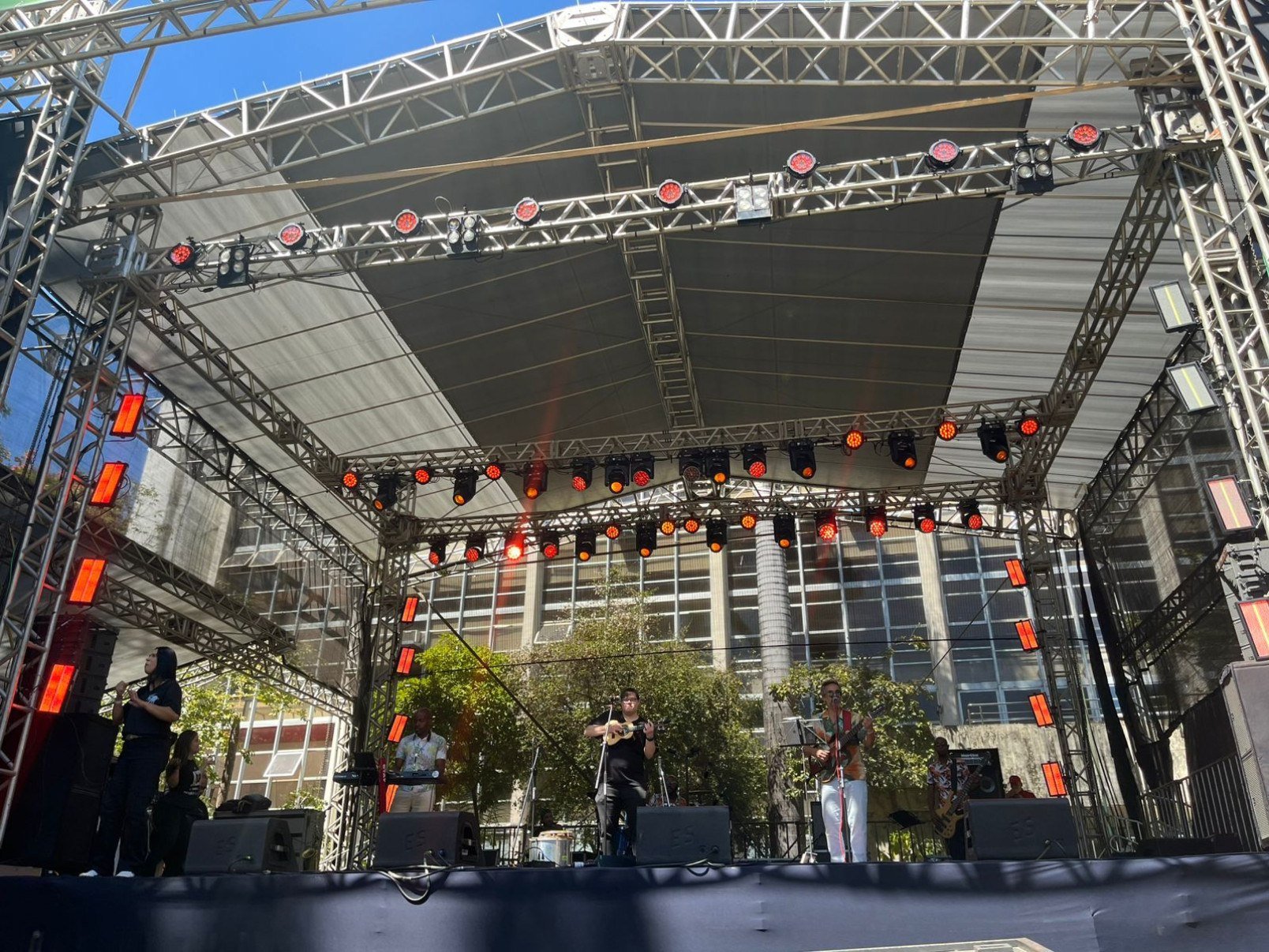 Ao lado do músico no palco estavam Daniel Viana (vocal/violão), Henrique Costa (bateria), Tiago Buiu (baixo) e Denis Silva (teclado/saxofone). Além do cavaquinho, o Dudu também tocou o pandeiro, o tambor e cantou a música “O sol”, do Jota Quest. O repertório passou por canções de samba, pagode, axé, MPB e pop nacional.