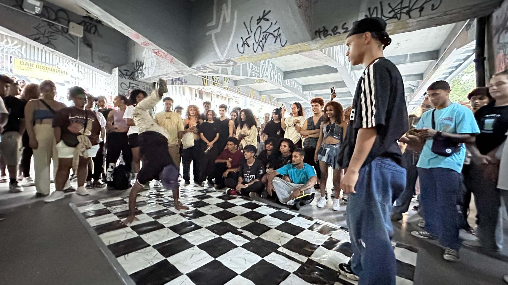 Começou por volta das 17h, neste domingo (24/8), no Viaduto Santa Tereza, a Batalha Open Style. Organizada pela DeBH Battle, a competição está aberta a todos os estilos de dança – e não somente ao Passinho, como divulgado pela programação da Virada Cultural.