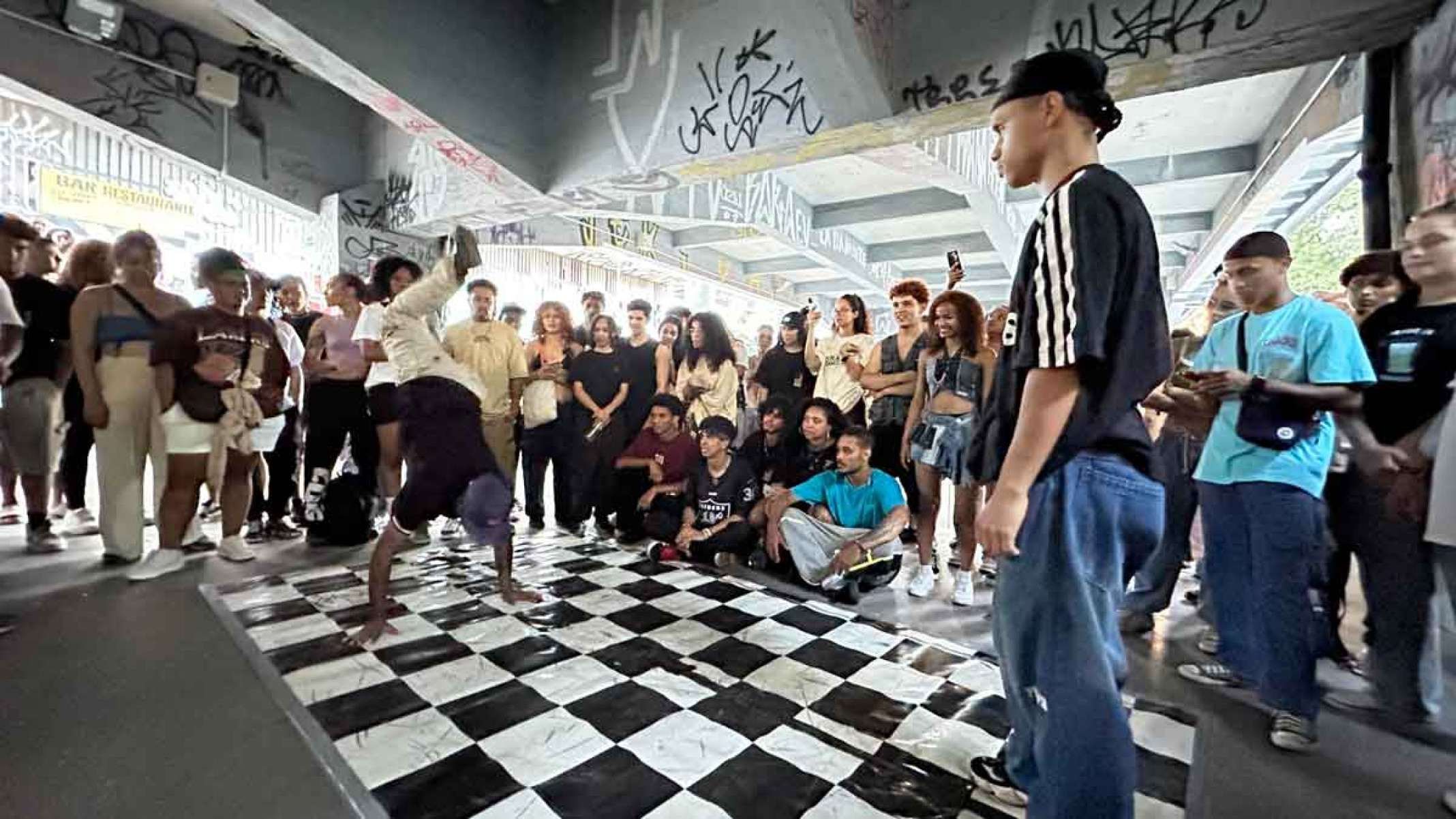 Mas houve espaço para novidades. Duas delas, por sinal, ocorreram simultaneamente, no região do Viaduto Santa Tereza. Embaixo dele, próximo ao Parque Municipal, aconteceu a Batalha DeBH Open Styles (anunciada erroneamente pela produção da Virada como Batalha do Passinho, ligada ao funk). Vinte e nove dançarinos de diferentes estilos participaram do evento – o vencedor foi Brenim, que recebeu R$ 500, mais troféu.