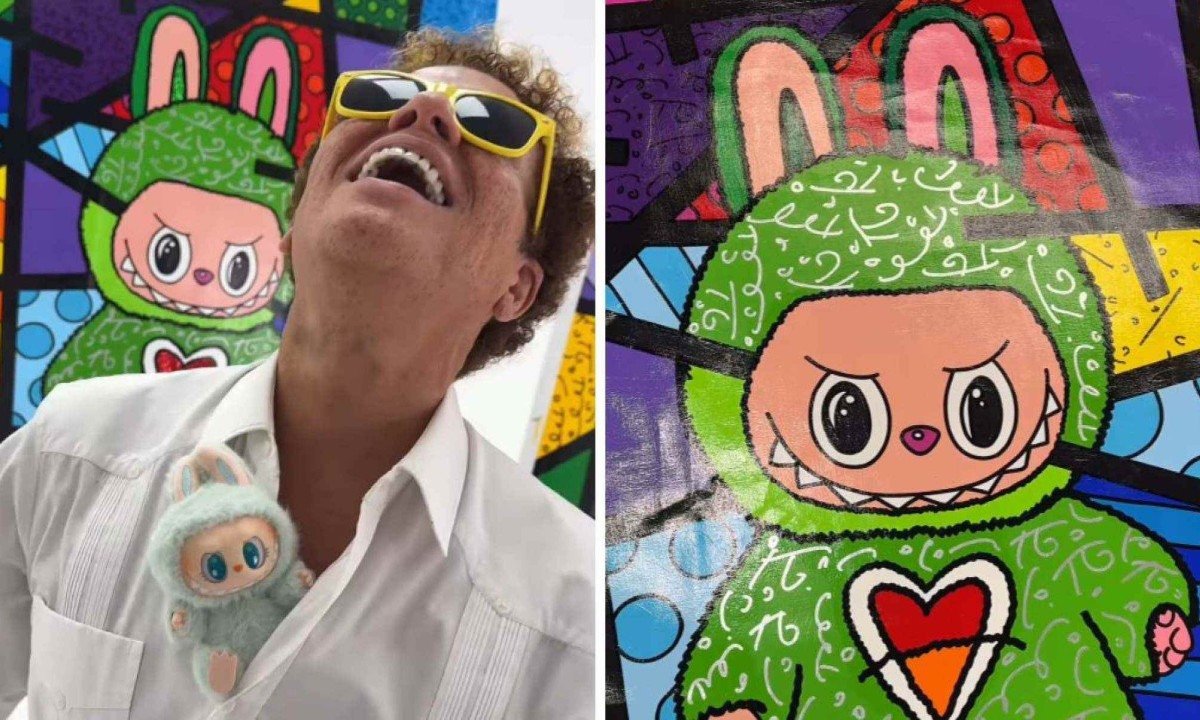 Romero Britto apresenta Labubu pintado por ele crédito: Redes sociais