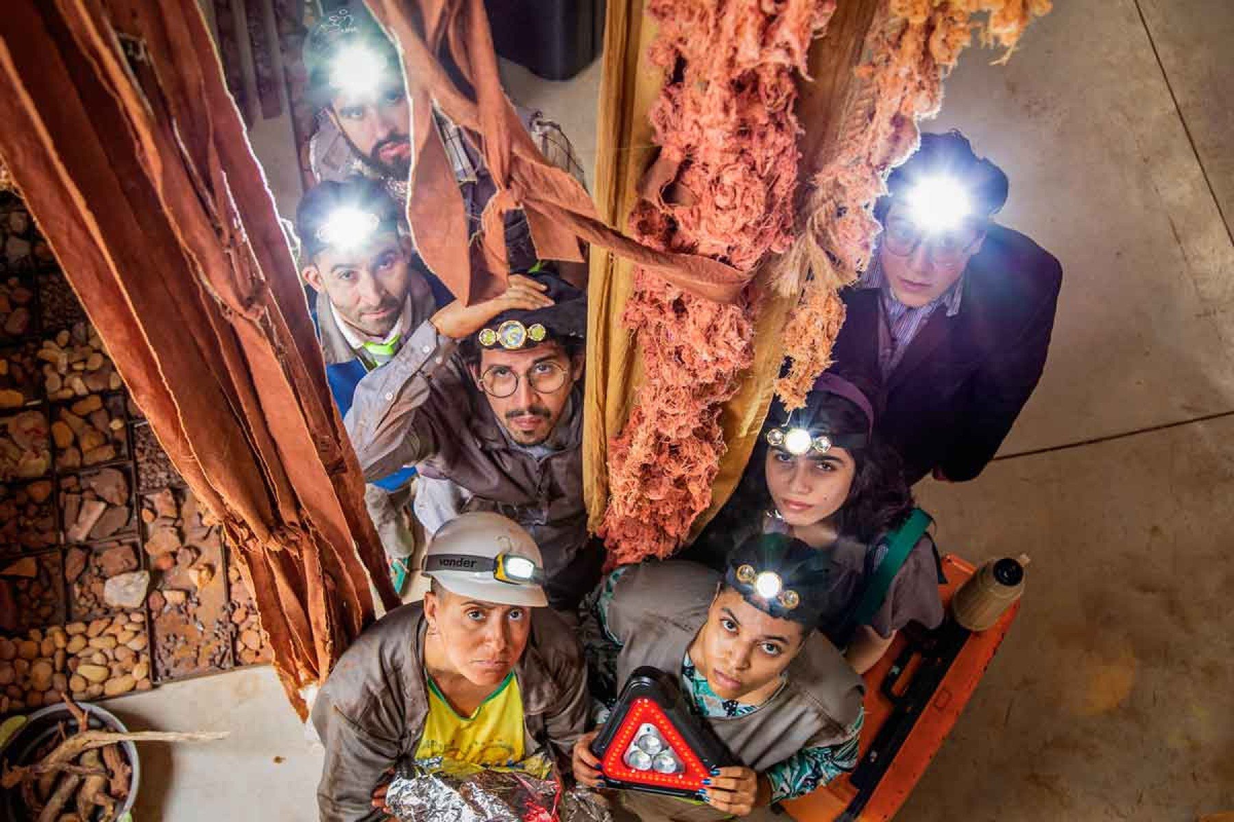 Trazendo a trama para o contexto mineiro, o grupo criou a fictícia Serra de Dentro, onde uma comunidade vive no interior de uma mina que pode ruir a qualquer momento, devido à atividade mineradora. “É um risco iminente que existe desde a fundação de Minas Gerais. Mas, ao mesmo tempo, é algo que a gente não consegue deixar para trás, porque a nossa economia depende disso”, diz Domenica Morvillo, paulista do interior, que veio para Minas estudar teatro na UFMG.