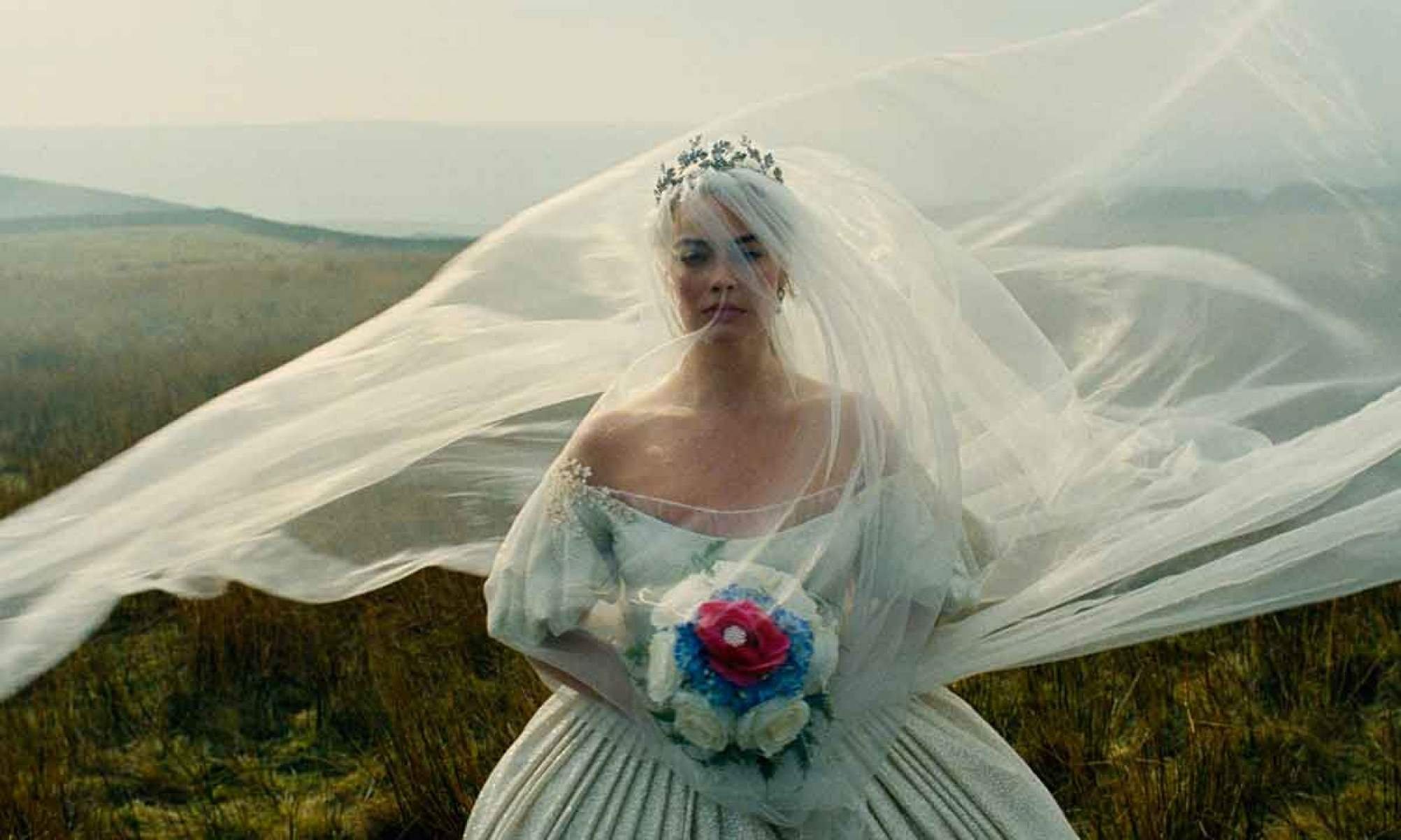 No início do filme, Margot Robbie surge como uma Cathy teimosa e ingênua. O visual da atriz praticamente inalterado para a personagem guarda ecos da Barbie que ela viveu no longa de Greta Gerwig, mas, à medida que a história avança, a atriz se distancia dessa imagem e passa a convencer como a personagem.