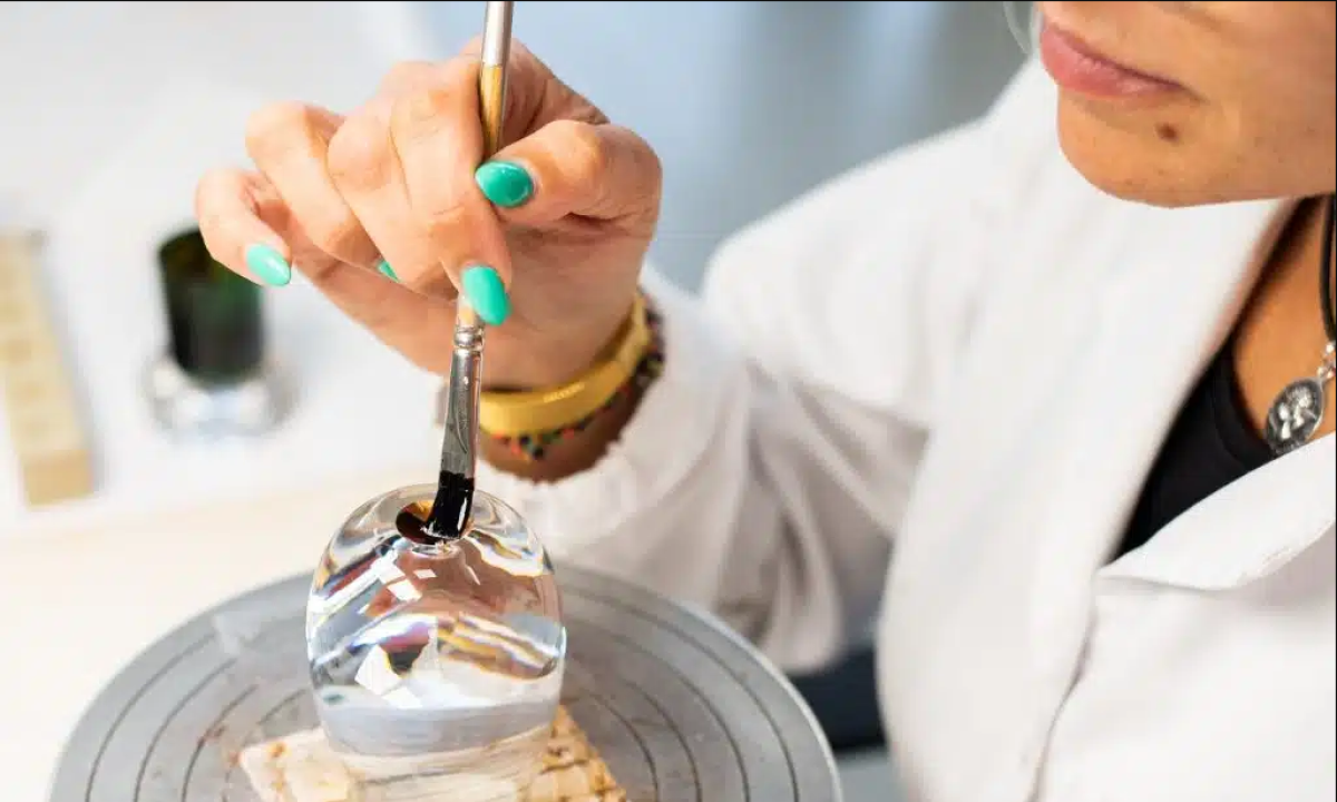 Quanto mais lenta for a movimentação, melhor a qualidade da cachaça, de acordo com o especialista. A capacidade de conter o dobro de uma dose comum (60ml) também foi escolhida para contribuir na detecção dessa característica. “O restante do volume permite movimentar o copo e ver as lágrimas, os aromas podem sobem pelas paredes, chamadas de chaminés, e vão para o nariz”, conta Felipe. O formato e diâmetro do bocal também são pensados para concentrar o aroma na abertura.