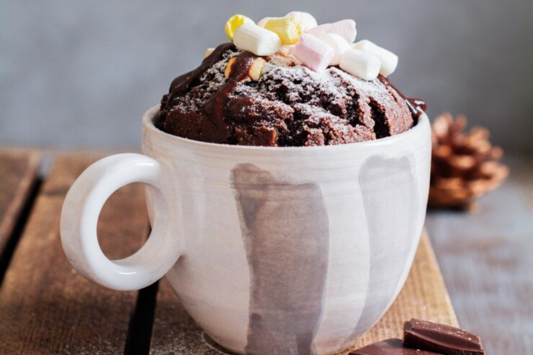 Sirva com uma bola de sorvete, calda de chocolate ou um punhado de frutas vermelhas para transformar seu lanche em uma verdadeira sobremesa de confeitaria — feita direto da caneca para a colher.