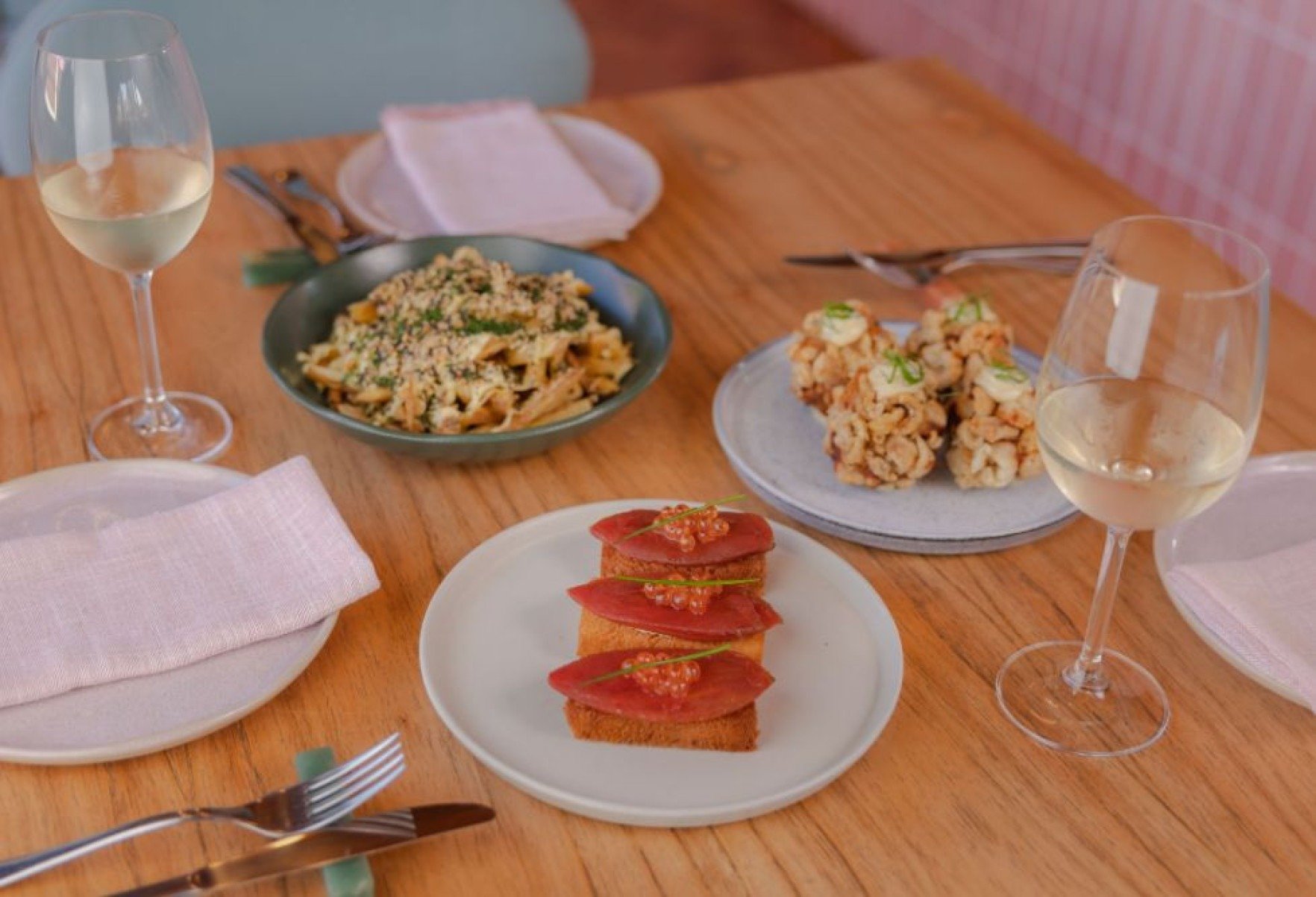 Em 2023, eles começaram um novo projeto, algo que fizesse sentido para a chef, afinal de contas, seria o seu restaurante, onde o Túlio seria um apoio nos bastidores. “Queríamos um ambiente colorido, com referências arquitetônicas modernistas, ligadas aos anos 1940, 1950”, diz. A referência é a estética proposta pelo cineasta estadunidense Wes Anderson, famoso pela paleta de cores alegre e ambientação vintage.