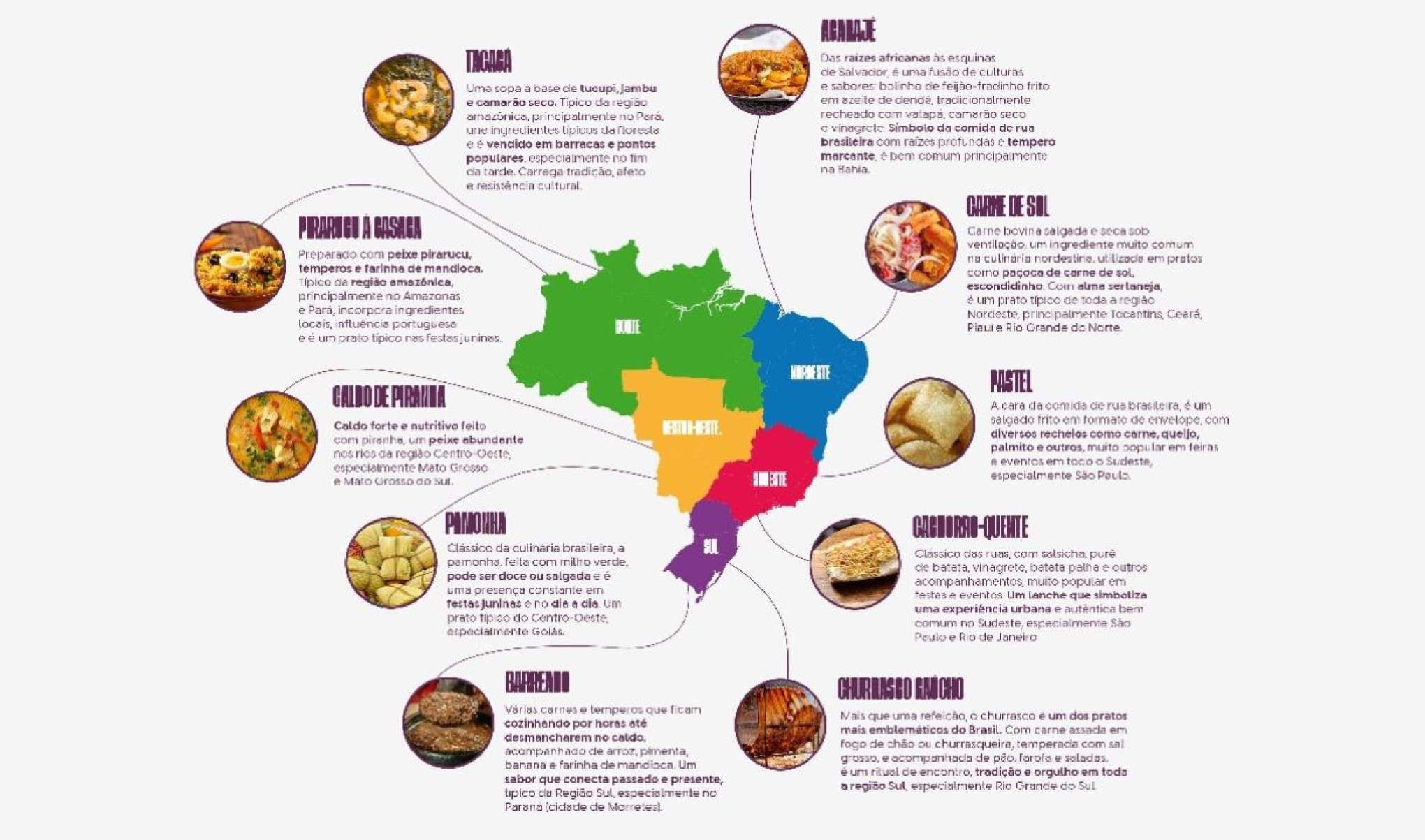 O estudo, que faz parte do relatório Menus do Futuro 2025 da UFS, aponta que a chamada “reinvenção” da comida de rua é uma oportunidade para operadores e restaurantes transformar receitas populares em propostas contemporâneas sem perder o sabor da tradição. Conheça um panorama regional dos pratos que entraram no roteiro afetivo do país.