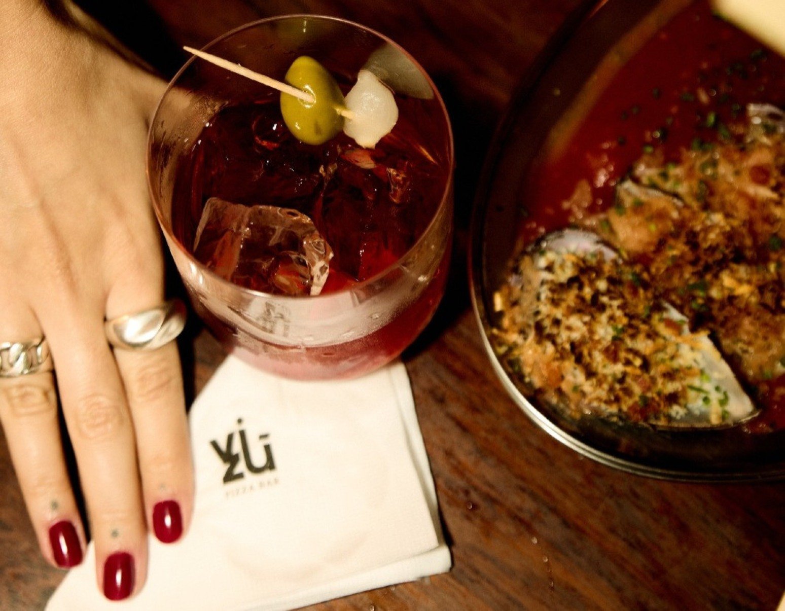 O foco são as músicas, escolhidas a dedo pela fundadora da casa e DJ Mafê Manna; as pizzas e entradinhas, preparadas pela sócia do estabelecimento, a chef Júlia Rothe; e a coquetelaria, que fica sob responsabilidade do outro sócio, o mixologista Henrique Passos.