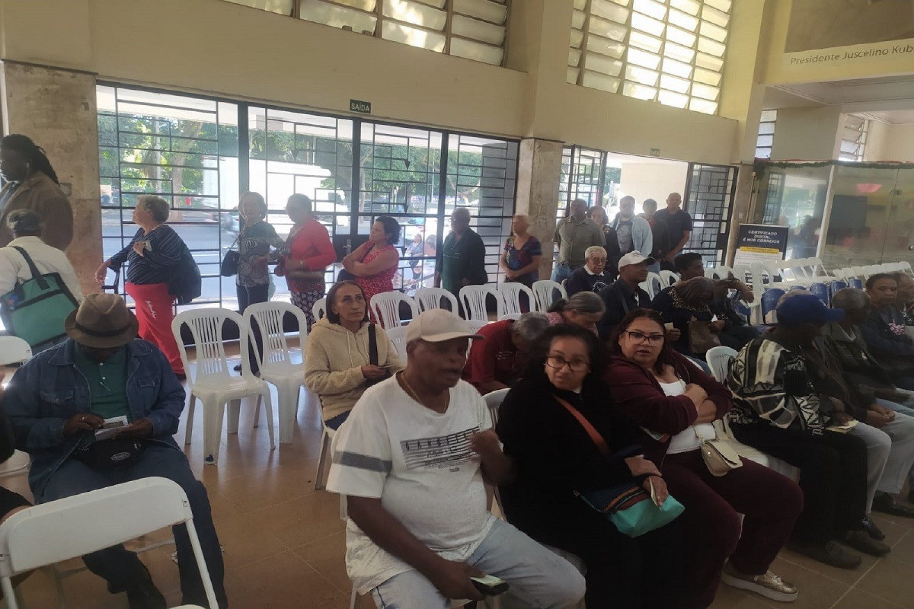 Aos poucos, o número de atendentes foi aumentando. Meia hora depois da abertura, eram três, pouco depois, quatro. Um a um os aposentados eram chamados.