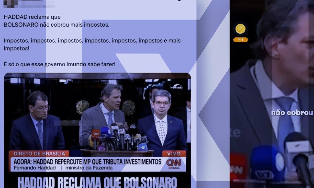 Conteúdo analisado: Vídeos nas redes sociais afirmam que o ministro da Fazenda, Fernando Haddad, teria dito que o governo do ex-presidente Jair Bolsonaro (PL) “cobrou poucos impostos”, em uma suposta crítica à política tributária do governo anterior. As postagens utilizam trechos editados de uma entrevista coletiva concedida pelo ministro no Senado Federal em 7 de outubro de 2025, omitindo o contexto no qual a fala foi feita.