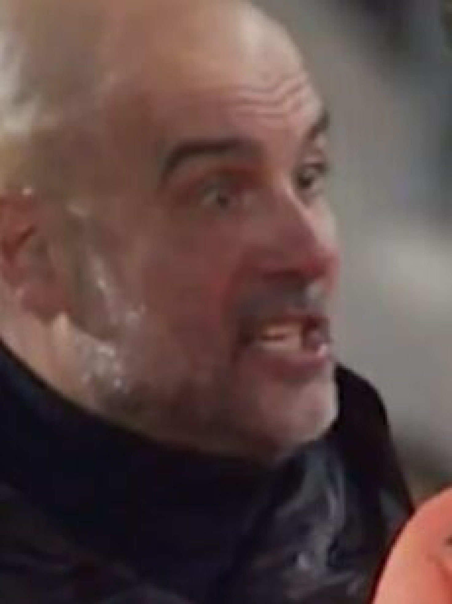 Guardiola abraça e grita com Ortega, que pouco reage, enquanto ambos saiam do gramado.
