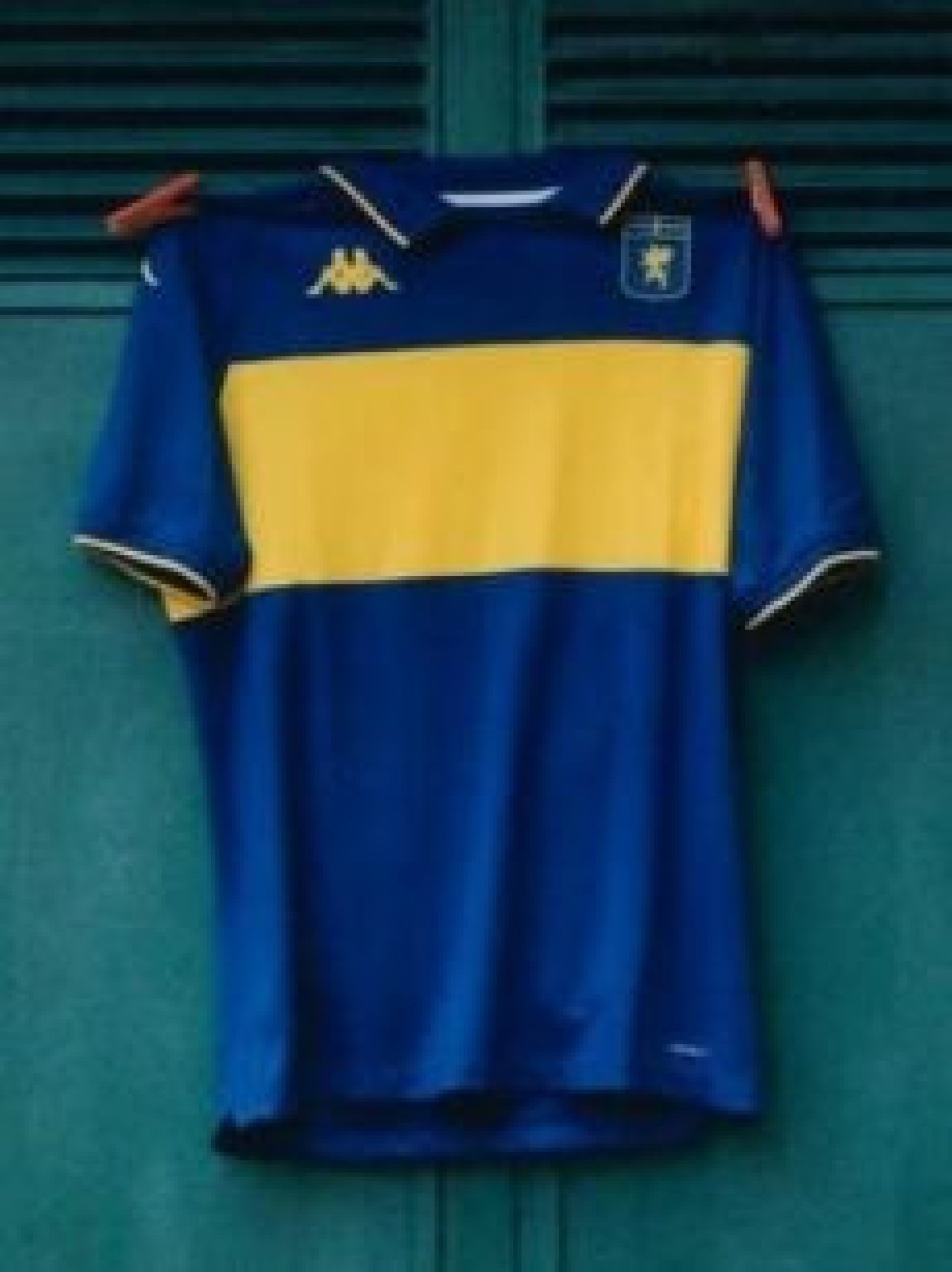 O kit especial do Genoa tem como base o uniforme do Boca. A camisa é azul e conta com a tradicional listra amarela horizontal no meio do item.