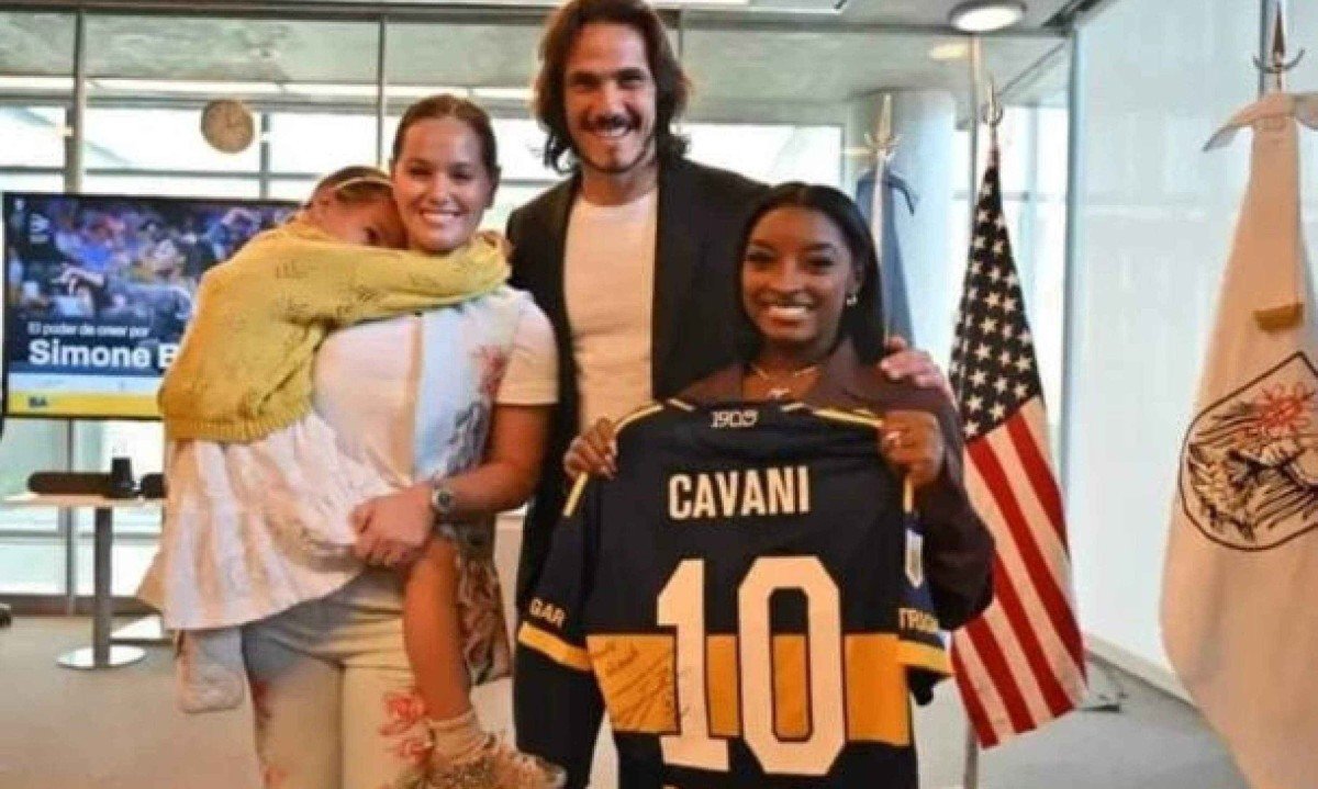 Na figura de “hóspede de honra”, o atacante uruguaio Edinson Cavani presenteou a ginasta norte-americana Simone Biles com uma camisa do Boca Juniors. O fato ocorreu nesta quarta-feira (8/10) em meio a presença da atleta estadunidense no país vizinho.