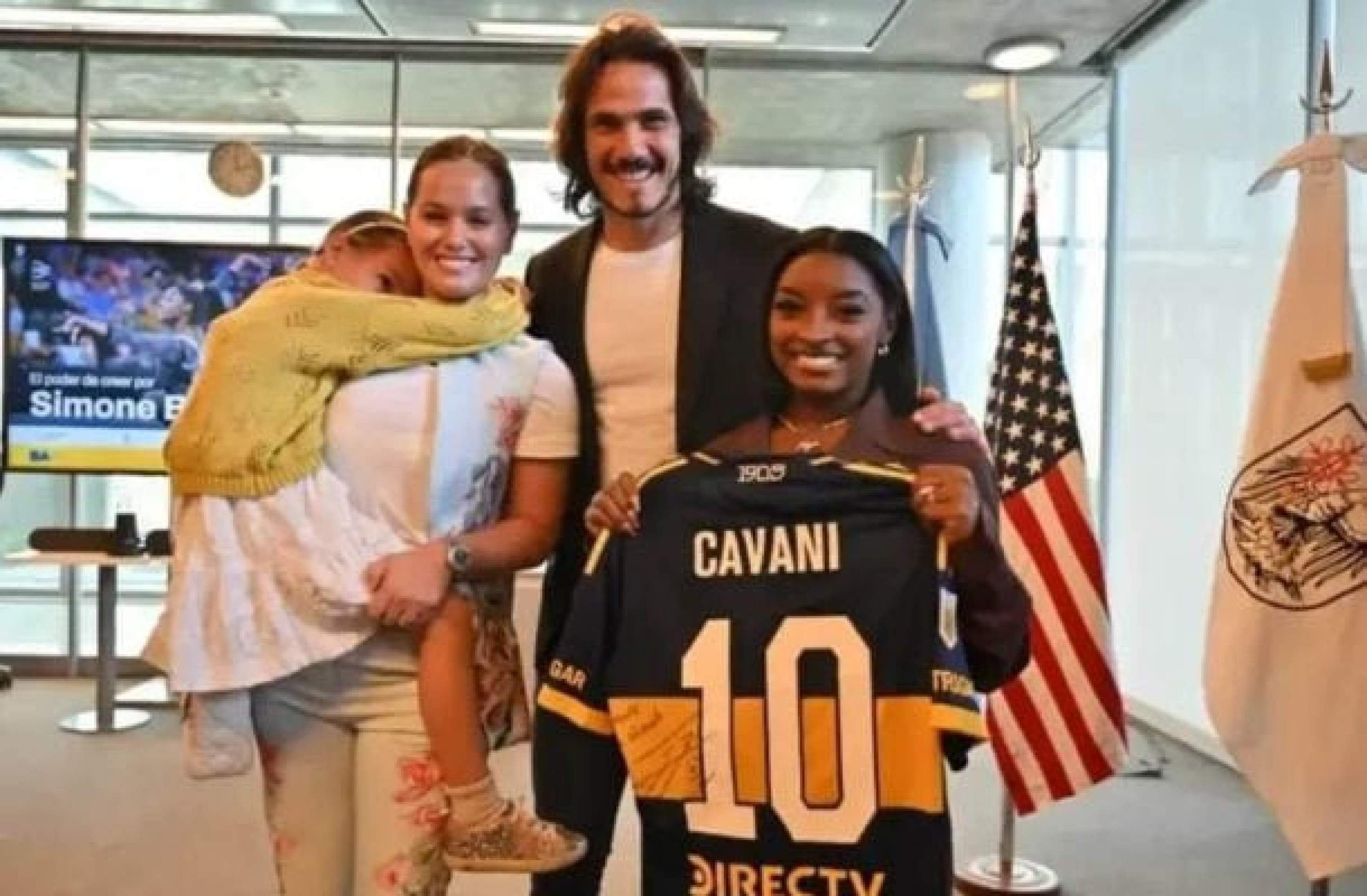 Na figura de “hóspede de honra”, o atacante uruguaio Edinson Cavani presenteou a ginasta norte-americana Simone Biles com uma camisa do Boca Juniors. O fato ocorreu nesta quarta-feira (8/10) em meio a presença da atleta estadunidense no país vizinho.