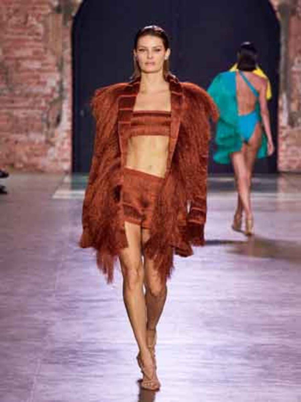O crochê de palha de buriti já é utilizado há anos nas bolsas de fibras das coleções de Lenny Niemeyer e levar esse saber brasileiro ancestral para a narrativa do desfile foi um caminho natural. Por meio da ponte feita por Raissa Colela, estilista que trabalha com a associação, a marca estreitou seus laços com as artesãs e construiu peças únicas, unindo o olhar sofisticado de Lenny Niemeyer ao saber impecável do manejo da palha de buriti.