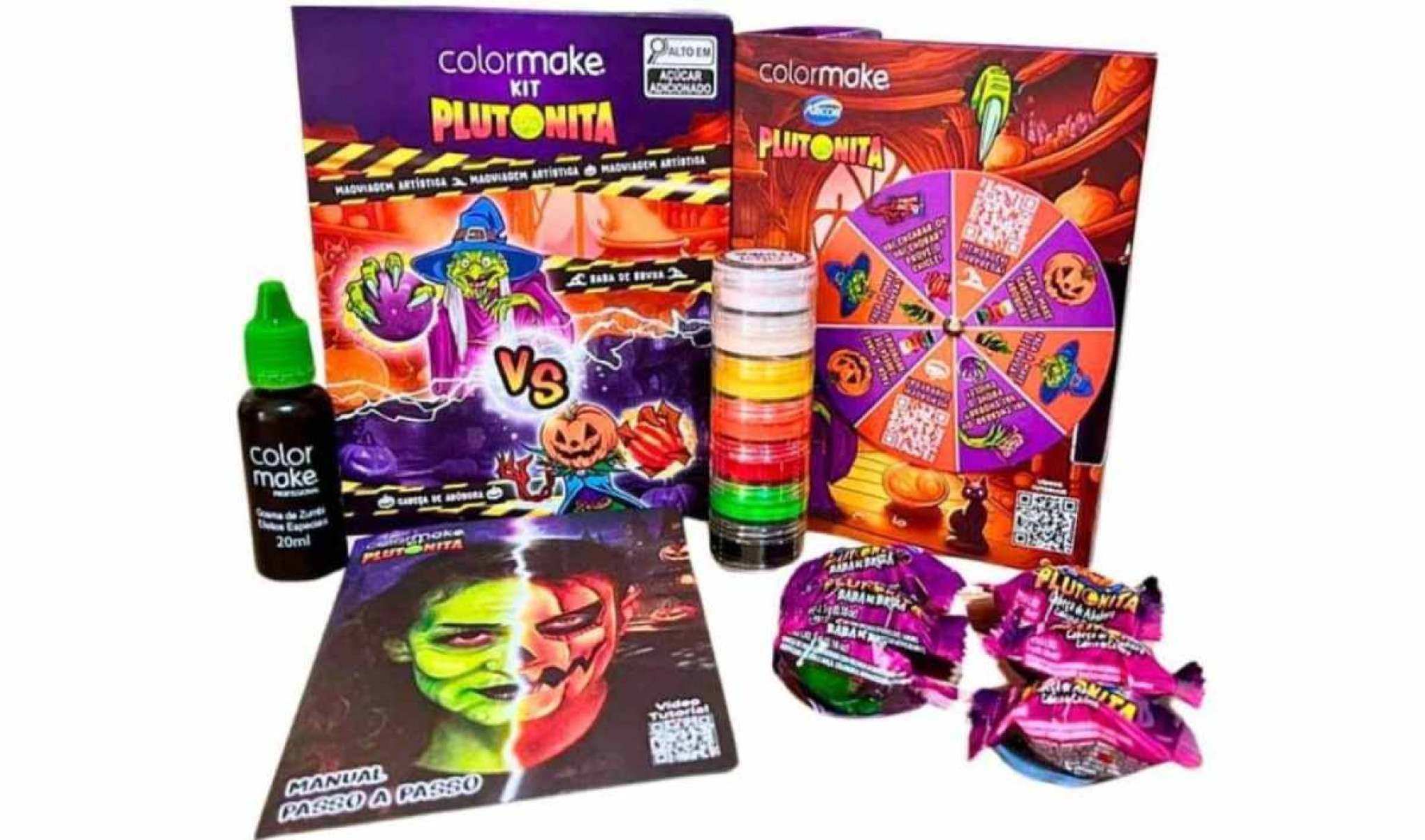 Além de permitir explorar a criatividade para fazer fantasias, o kit ainda promete diversão e nostalgia para toda a família. O kit contém seis cores de tinta cremosa para a pele, pó translúcido HD, gosma de zumbi, seis chicletes da linha plutonita (três baba de bruxa e três cabeça de abóbora famosos nos anos 2000). Além de uma roleta interativa e um manual passo a passo para as maquiagens de bruxa e abóbora (inspirados nos sabores dos chicletes).