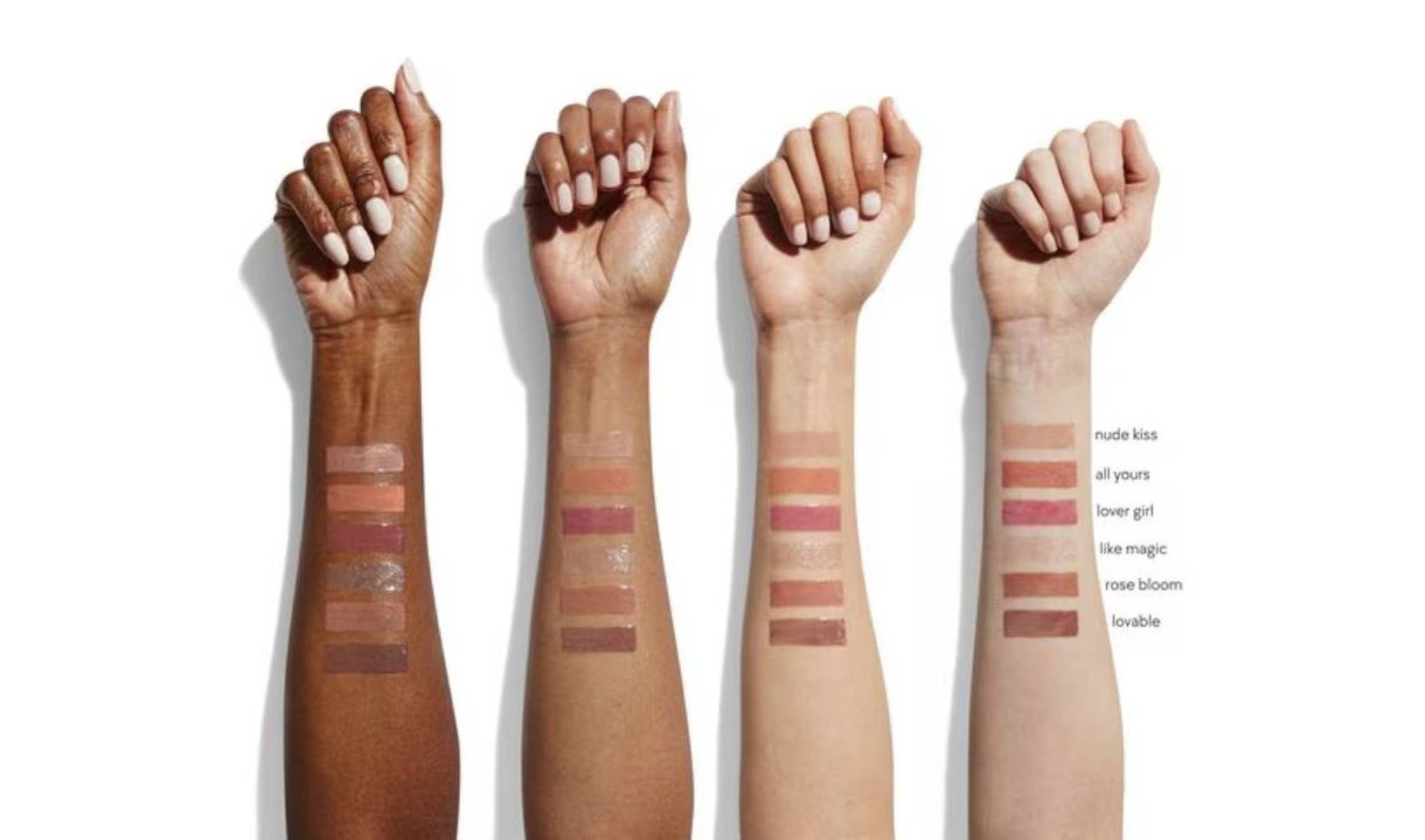 Swatches das cores do Supple Kiss Lip Glaze da Kylie Cosmetics