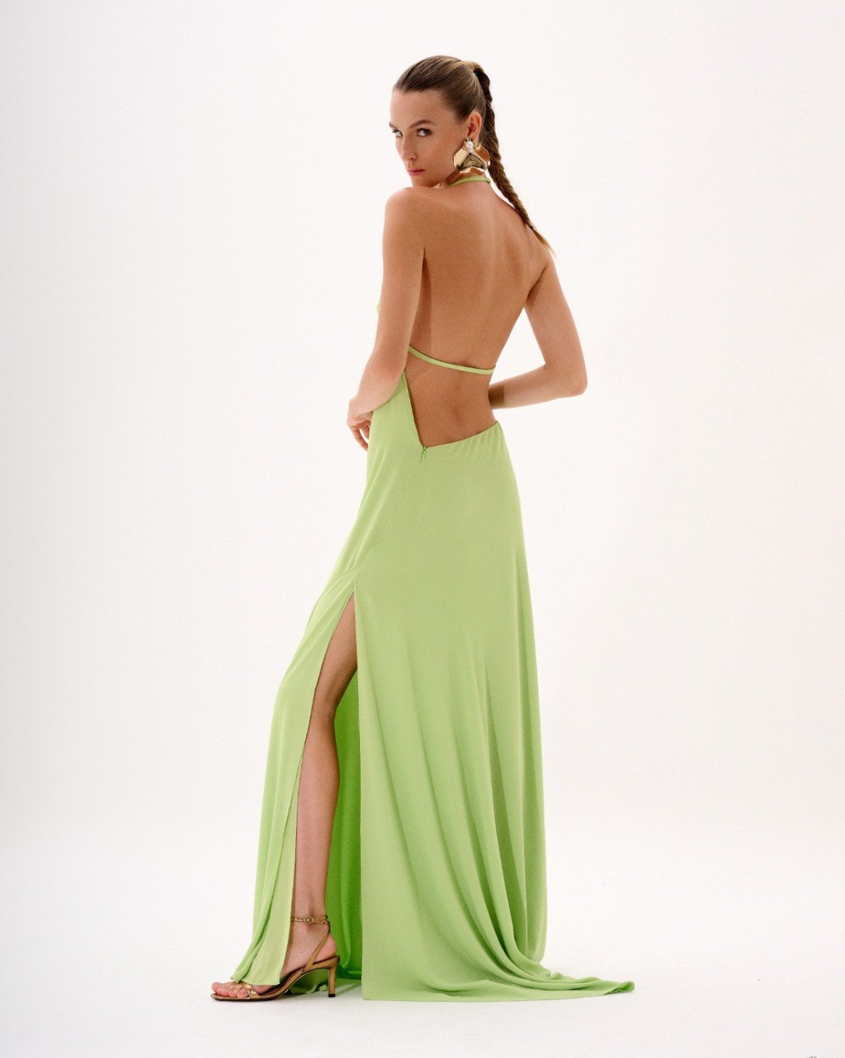 Alças lateralizadas, bordados manuais em relevo e flores aplicadas em materiais nobres. Não há peças óbvias. Cada look carrega uma intenção, seja um corte estratégico ou uma fenda inesperada.