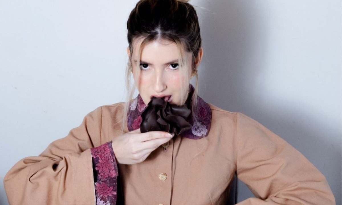 Se antes a ideia de Vitória era se basear nas cores e formas de pratos para criar roupas, depois de conhecer o trabalho de Marina o objetivo se tornou outro, bem mais ousado: transformar a comida em roupa. A confeiteira, que gosta muito de criar, já havia desenvolvido, há algum tempo, um “tecido” elástico de chocolate com acabamento de uma pintura que imita um veludo, e apresentou, em 2024, sua criação na semana de design mineiro, na UEMG.