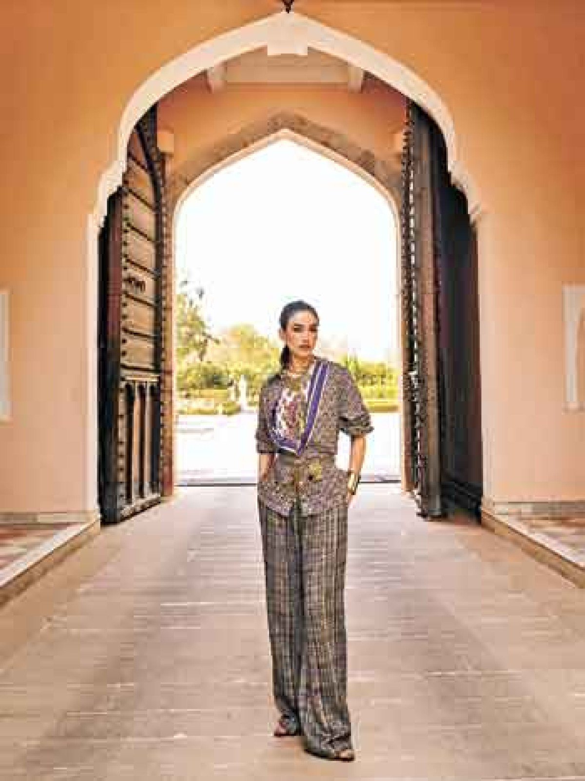 Holi Dreams destaca uma seleção cuidadosa de materiais como viscose, tule, algodão e linho. Entre os principais elementos, estão estampas exclusivas que homenageiam a cidade de Jaipur, conhecida como a “Cidade Rosa”, além do animal print que aparece em tules, tecidos leves, denim e superfícies brilhantes. Também ganham destaque as padronagens Jodhpur com suas listras em tons de azul, Shanti, que aposta em tonalidades suaves como off-white, bege e branco, e Kashmir, ou Paisley, símbolo tradicional da região da Caxemira.