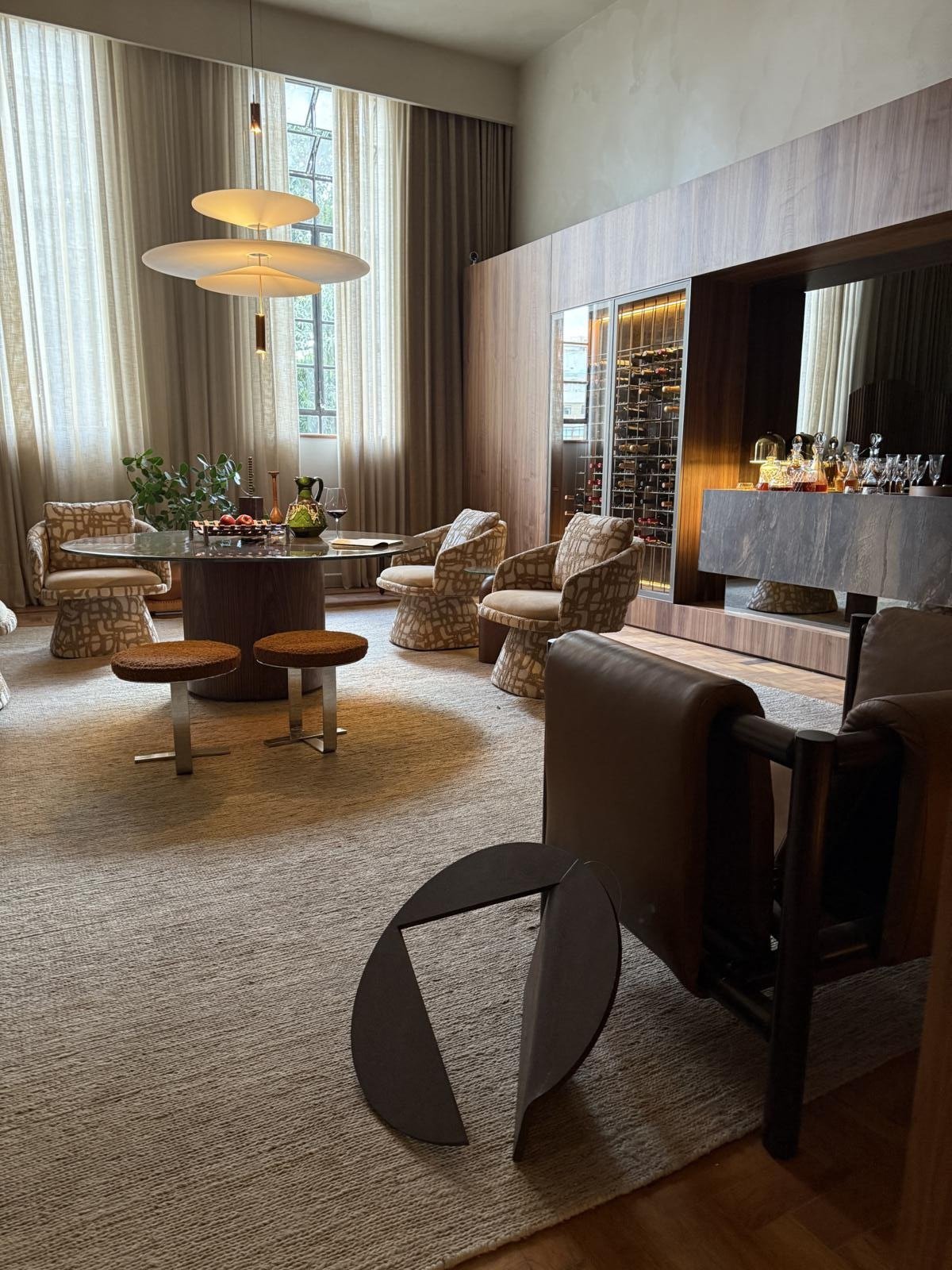 Seguindo pelo Corredor Raffaello Berti, uma intervenção assinada pela equipe da Hardy Design, criando uma experiência imersiva que celebra a arquitetura do edifício. Cris Capanema assina o Closet. A Sala de Jantar de Pedro Lázaro é um ode ao conteúdo, valorizando a bagagem cultural e histórica, proporcionando com maestria o encontro da arte com o design.