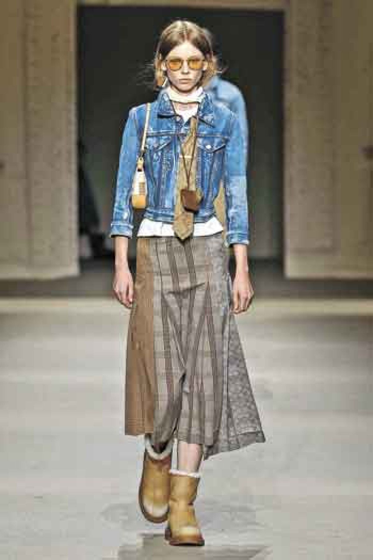 O cenário do desfile, que se assemelha a um deserto estadunidense, compôs bem a ideia do que existe no imaginário das pessoas sobre aquele universo. Os trench coats que são marca registrada da grife apareceram em estampas coloridas e divertidas e comprimentos variados. Por vezes, exibem detalhes de franjas e crochê.