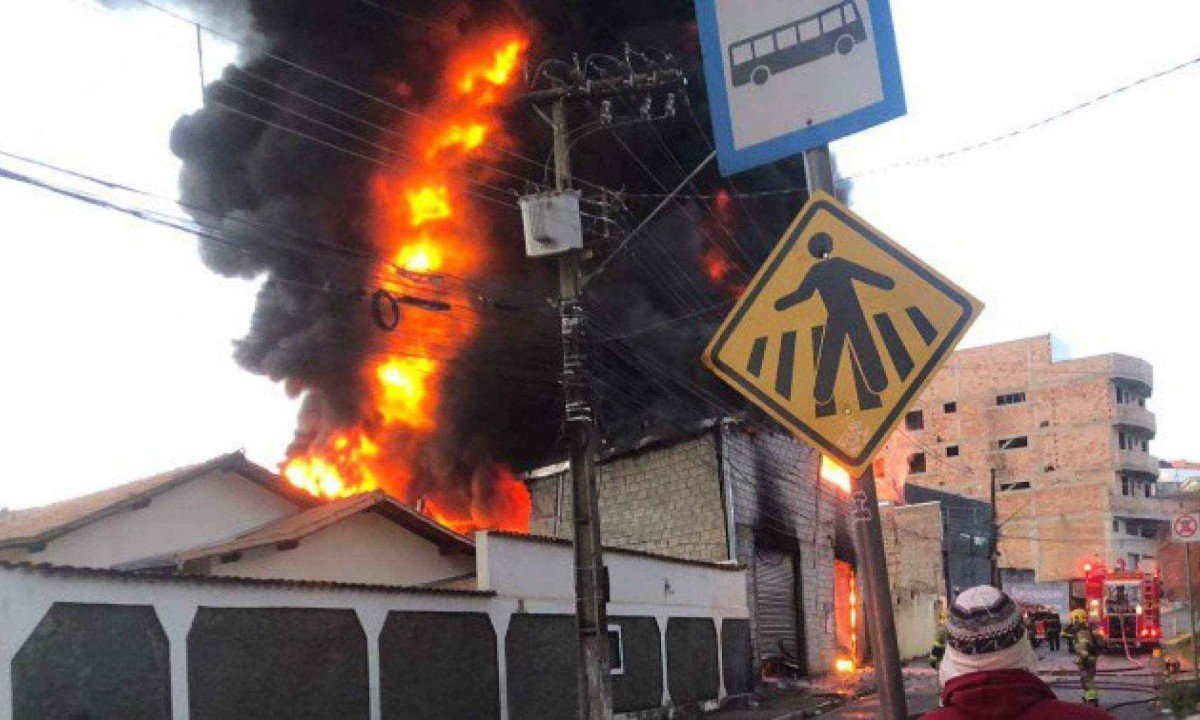 Veja imagens do combate às chamas no galpão de pneus, em Ibirité