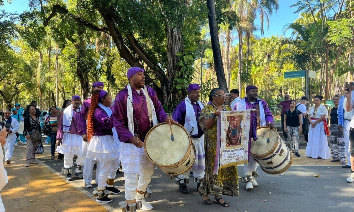 Treze Guardas do Reinado de Belo Horizonte fizeram cortejo no Parque Municipal, neste domingo (24/8) em frente ao Espaço Lagoa